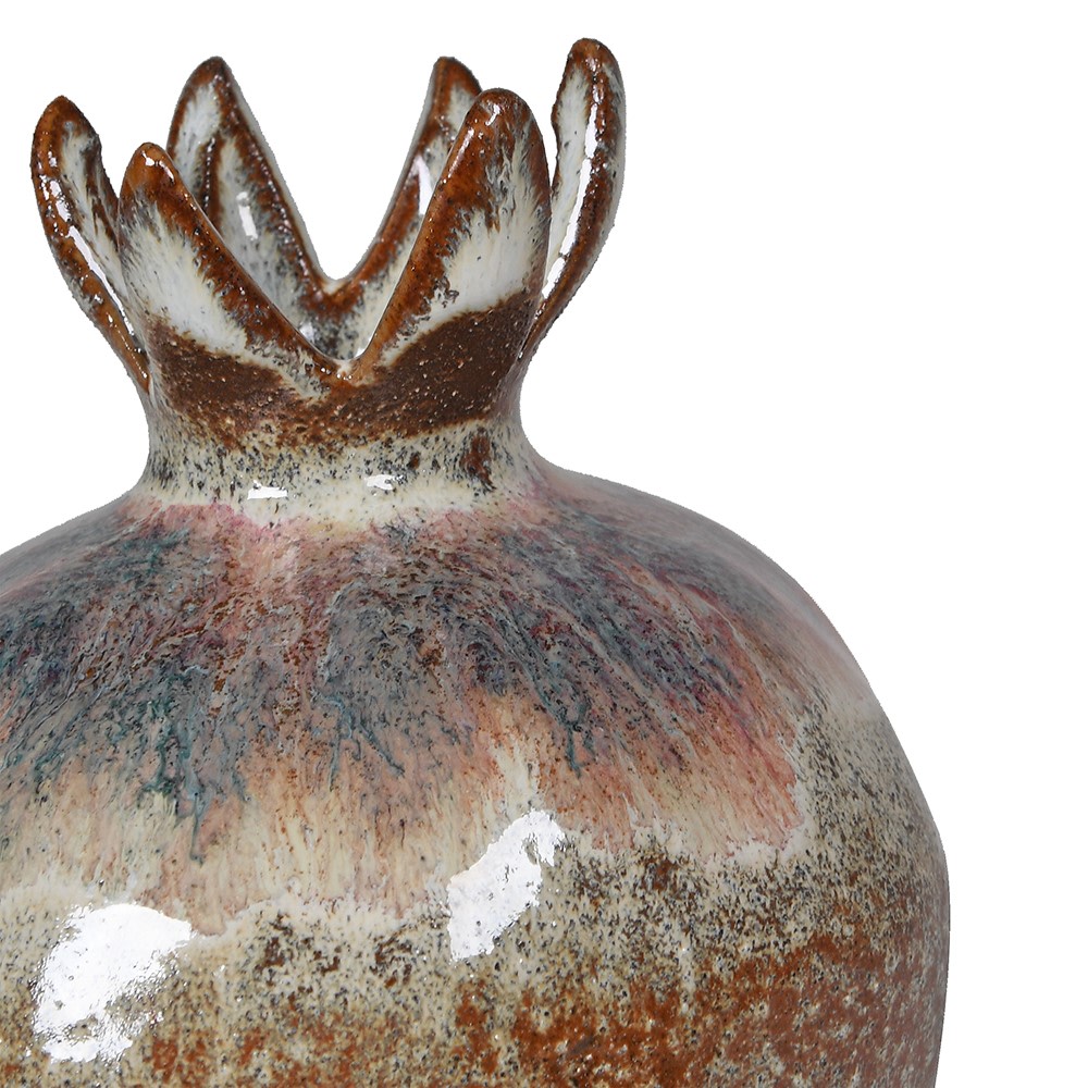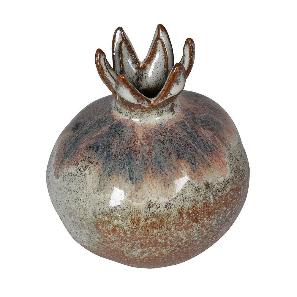 Brown Ombre Glaze Pomegranate Vase This striking ceramic vase showcases a sophisticated brown ombre glaze that transitions seamlessly from deep chocolate to lighter taupe tones. Glaze will differ for each piece.