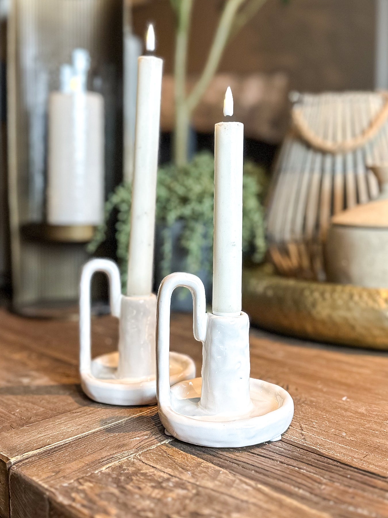 This cream ceramic candle holder is a sophisticated addition to any home decor. Its sleek design and sturdy construction provide a high-quality platform for displaying your favorite candles. Made with premium materials, this candle holder will add a touch of elegance to any room.