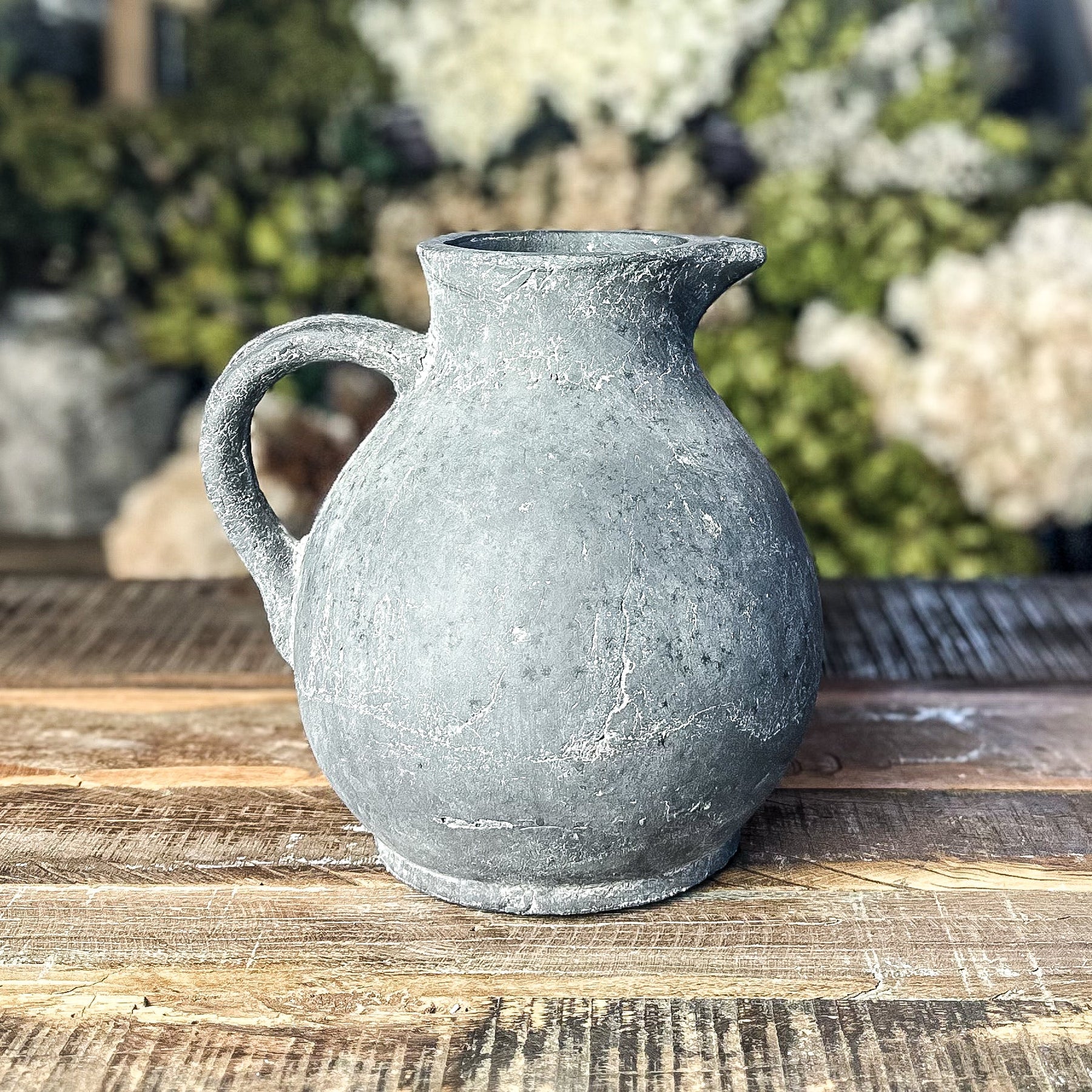 Expertly crafted, this distressed dark grey jug is the perfect addition to any home decor. The unique vase design adds a touch of elegance, while the dark grey color blends seamlessly with any color scheme. Made with high-quality materials, this jug will be a durable and stylish piece for years to come.