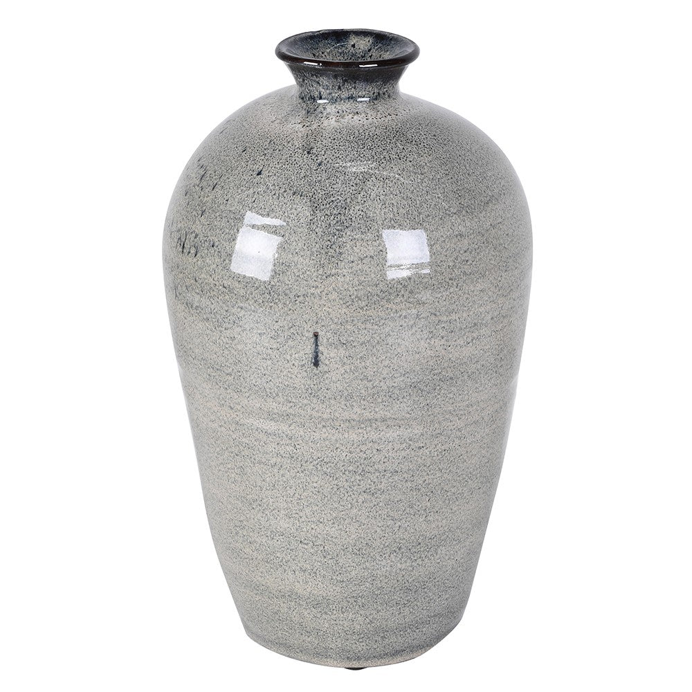 A striking grey speckled glaze vase that brings understated elegance to any interior. The distressed finish creates authentic character, with subtle variations in tone that catch the light beautifully. Glaze varies.