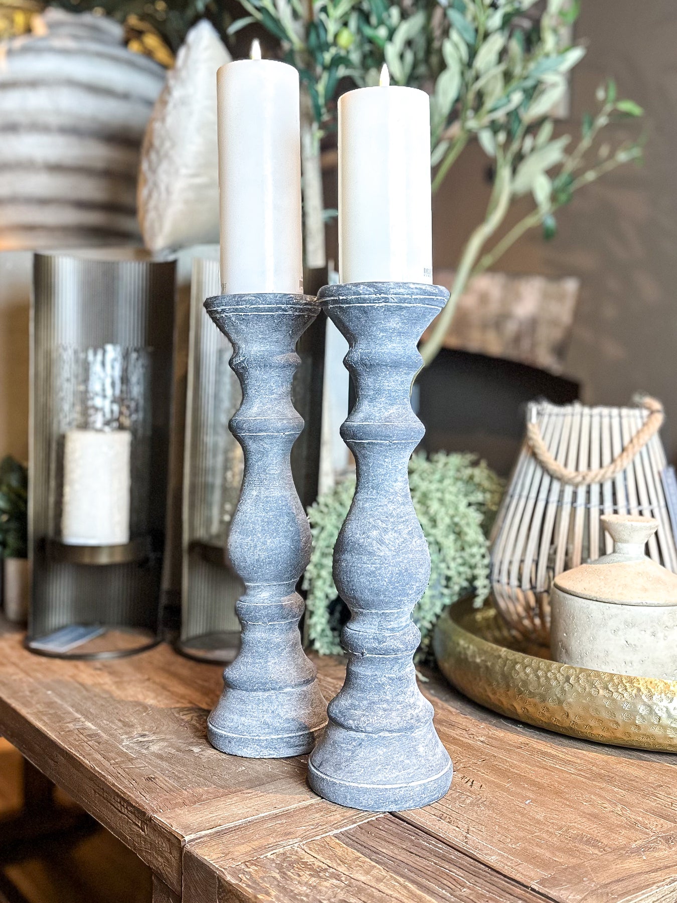 The Large Grey Column Candle Holder stands out with its statuesque design, adding architectural drama to any room. Its refined grey finish and tall, columnar shape create an immediate visual impact, making it a sophisticated centerpiece for both modern and classic interiors. Ideal for showcasing pillar candles, it enhances ambient lighting while elevating your décor with timeless elegance.