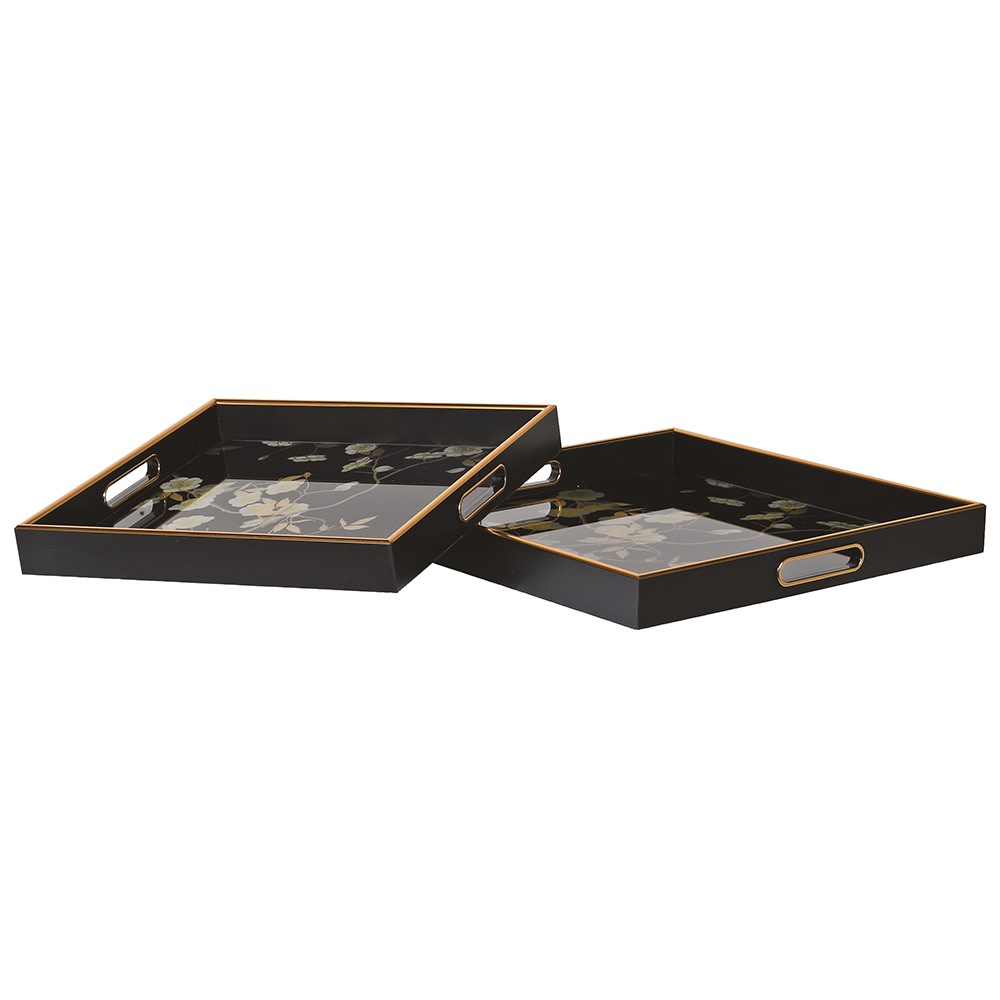 Elevate your serving style with this elegant set of two black floral square trays. Perfect for entertaining guests or organising your home, these versatile trays feature a sophisticated floral design that complements any décor.