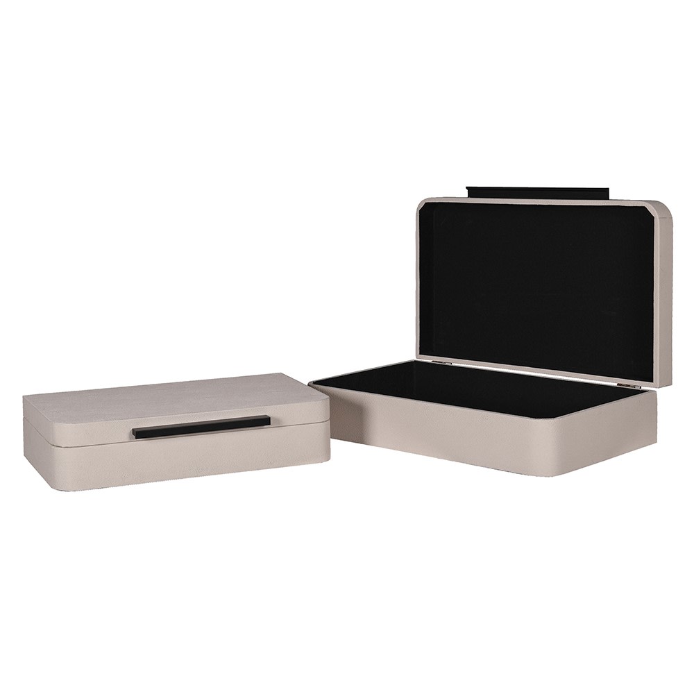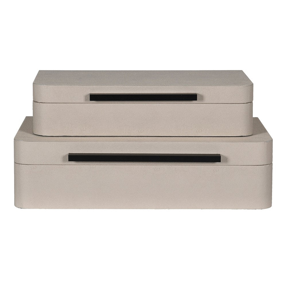 Elevate your décor with this sophisticated set of two ivory faux shagreen boxes. Featuring a luxurious textured finish that mimics genuine shagreen, these versatile storage pieces add refined elegance to any room.