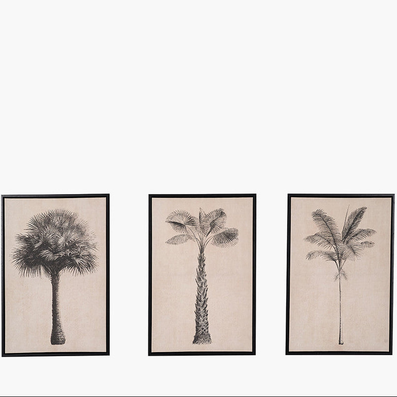 Bring tropical elegance into your home with this striking set of three canvas prints featuring natural and black palm tree designs. Ideal for living spaces, bedrooms, or offices seeking a touch of nature-inspired sophistication.