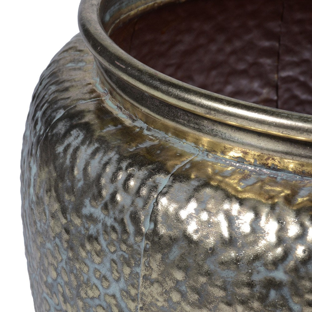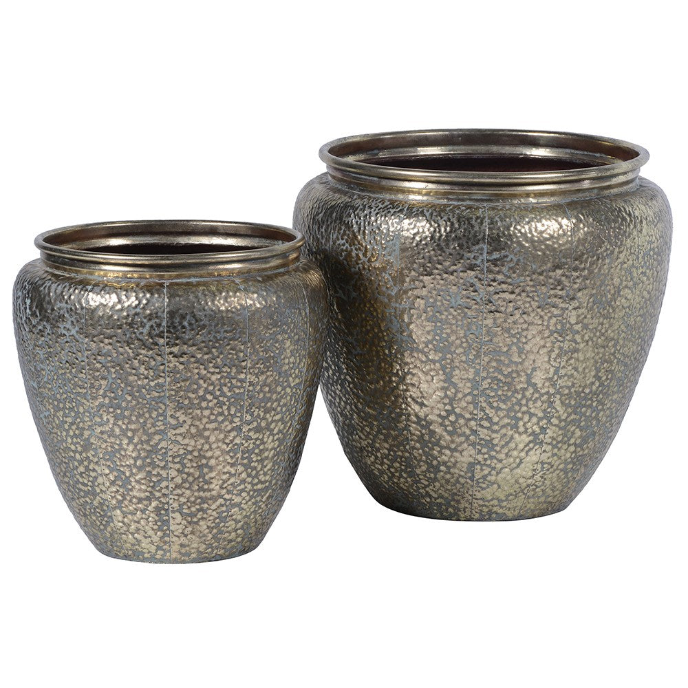 Crafted from premium hammered metal, this elegant pair of vases showcases artisanal detailing that catches light beautifully.