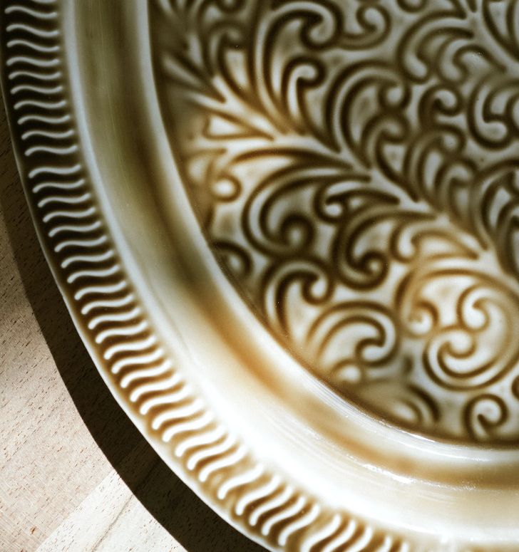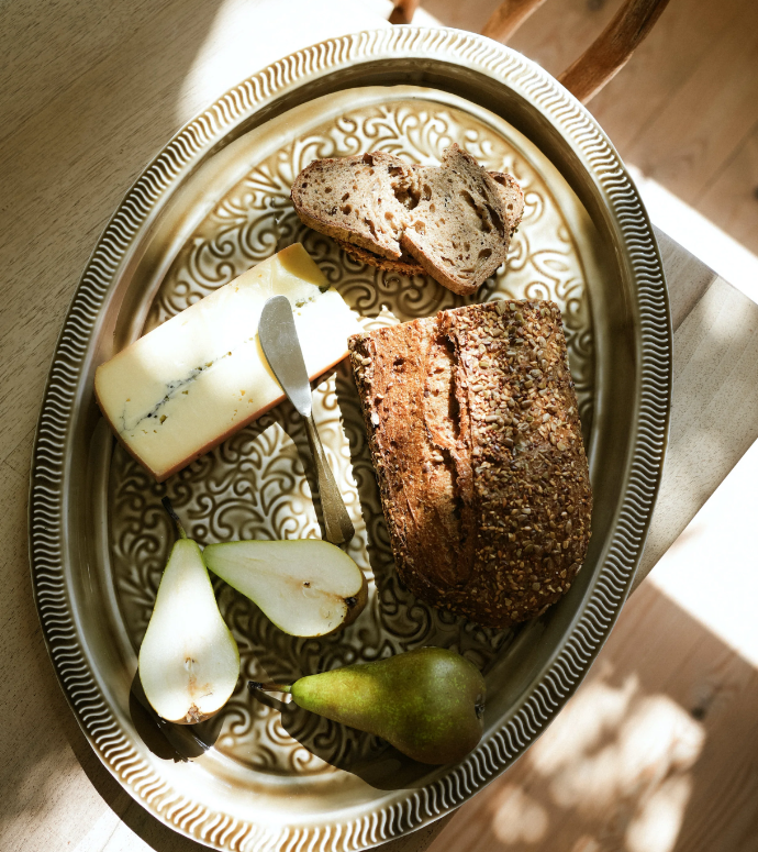 Crafted from enamel coated iron, this taupe oval platter combines timeless elegance with practical functionality.