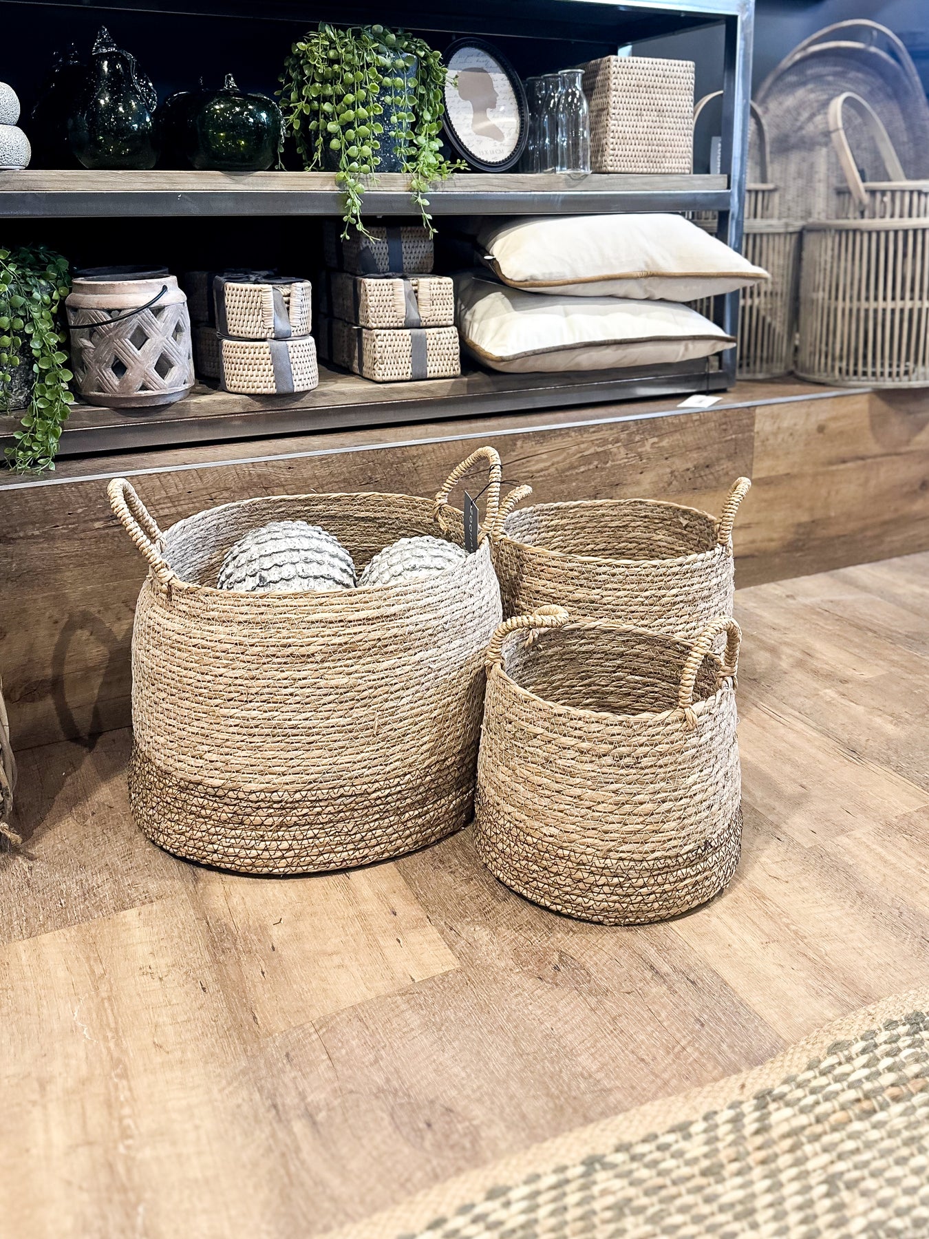 This set of three neutral rush baskets offers versatile storage solutions perfect for any room. Crafted with durable rush material, these baskets combine strength with a natural aesthetic, helping you organize clutter efficiently while maintaining a timeless look. Their neutral tones allow seamless integration into various decor styles, providing both functionality and understated elegance. Ideal for storing household items, accessories, or linens, these baskets bring expert-level organisation to your home.