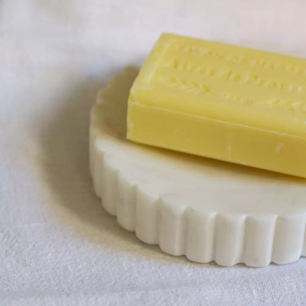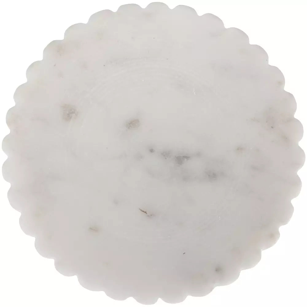 Keep your bathroom essentials organised with this elegant round soap dish, crafted from white marble. The subtle ridged surface provides practical grip while adding sophisticated texture to your countertop.