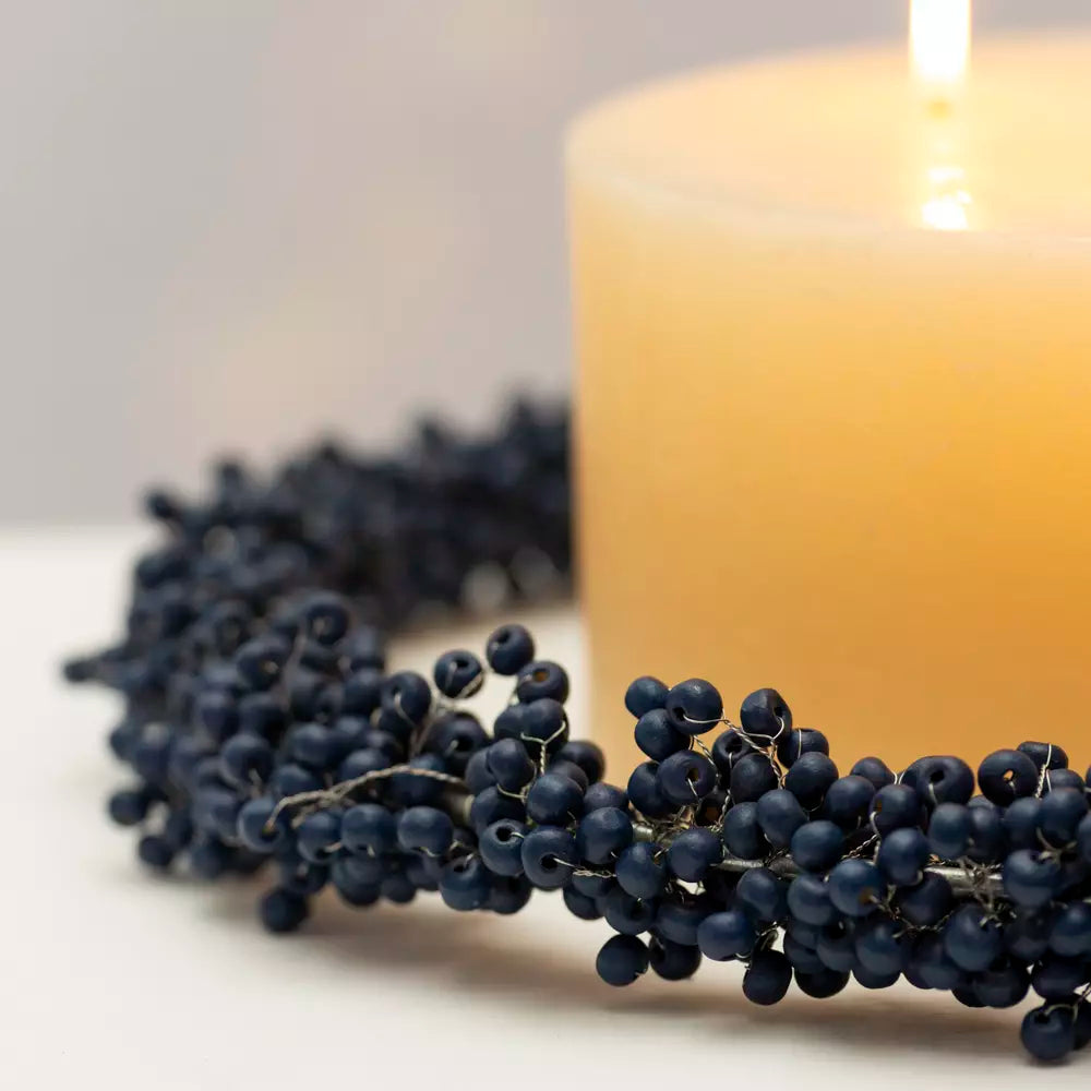 Crafted from natural wood and adorned with vibrant blue berries, this large wooden wreath offers a sophisticated seasonal accent.