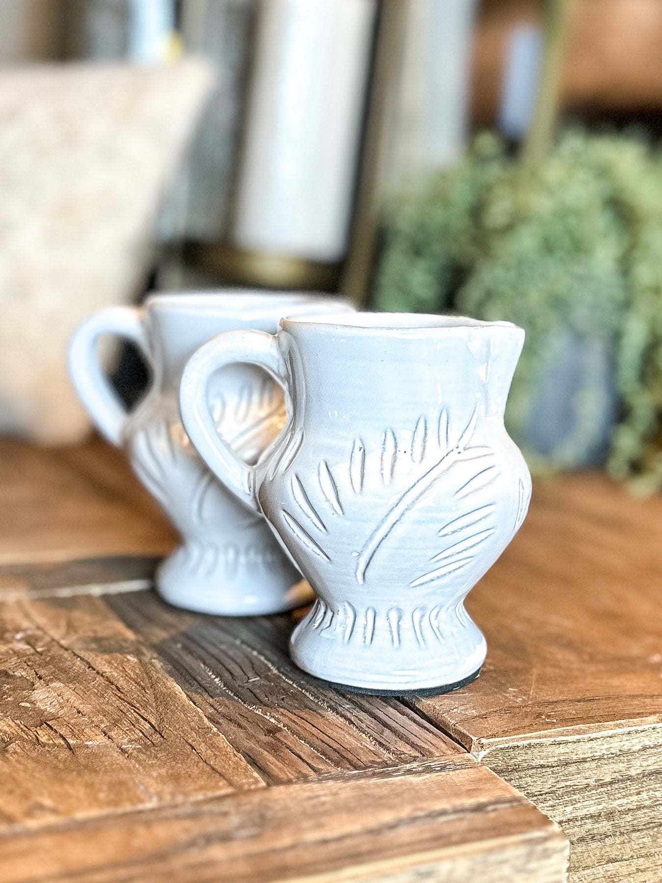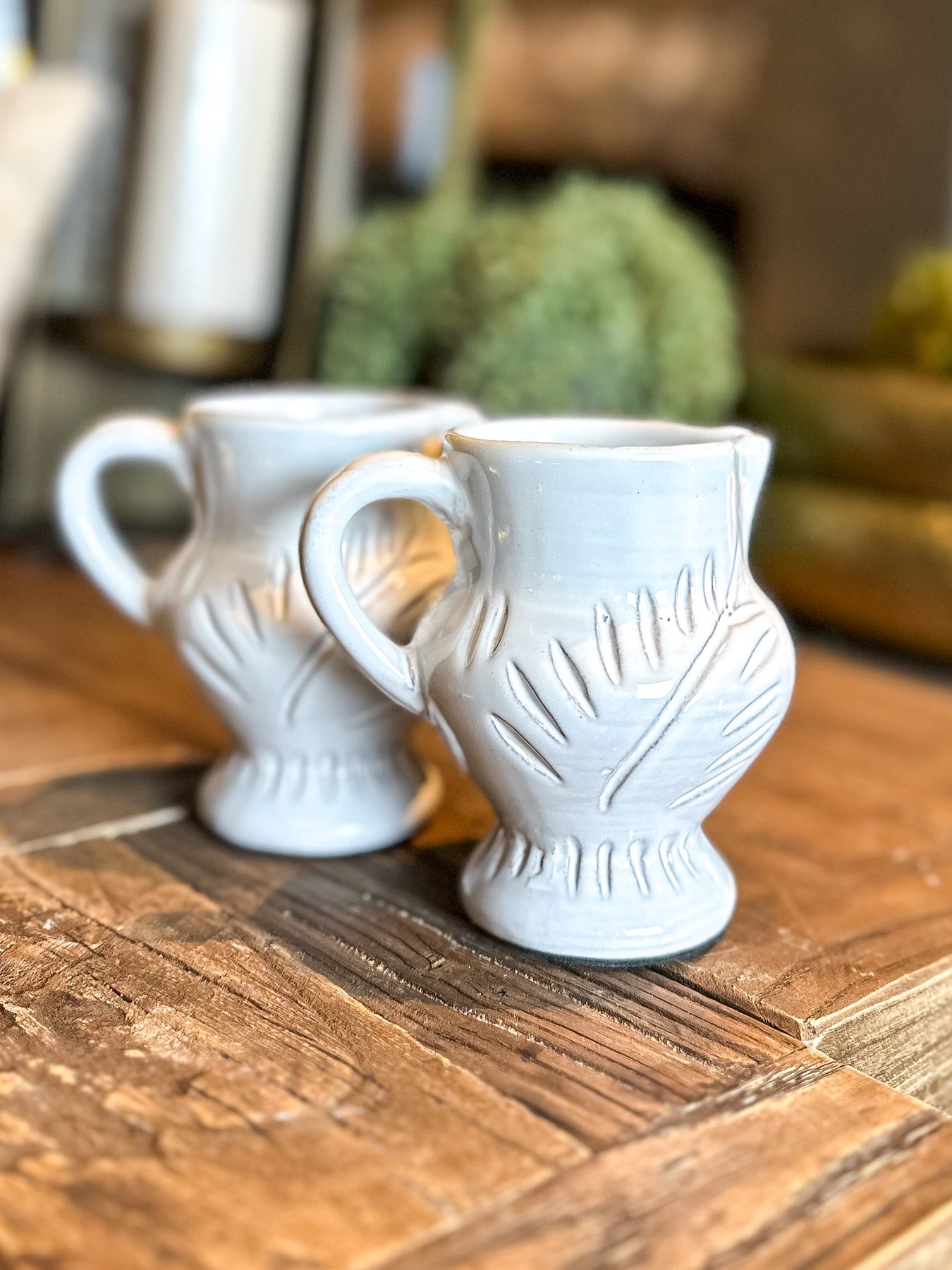 This White Glazed Leaf Etched Jug combines delicate craftsmanship with elegant design. Featuring a white glaze, the jug is elegantly etched with a refined leaf pattern, adding subtle texture and sophistication.