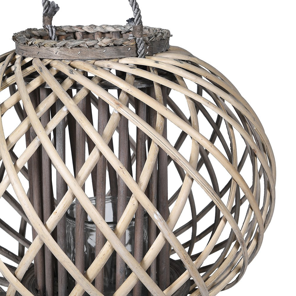 The Round Squat Grey Willow Lantern offers a sturdy, elegant solution for displaying candles.