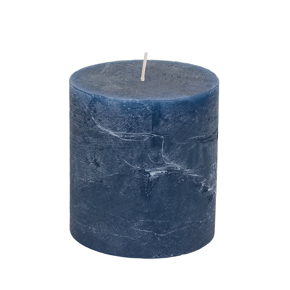 Crafted from premium wax, this rustic pillar candle delivers a sophisticated aesthetic with its deep inky blue finish.
