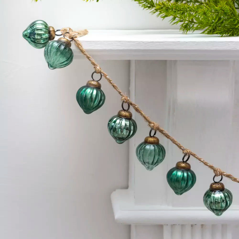 Ribbed Green Bauble Jute Garland