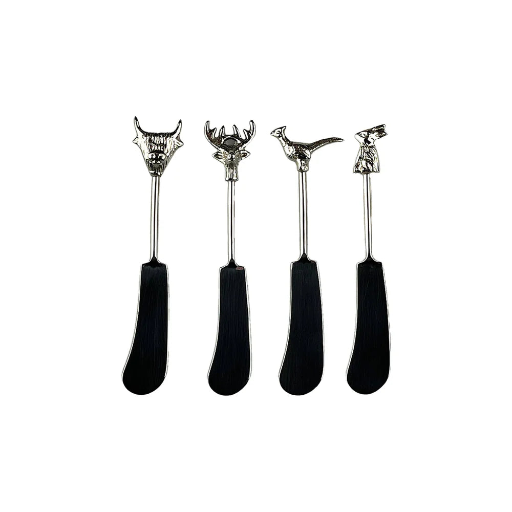 Set of four animal-shaped butter knives, each featuring a distinctive wildlife design. Crafted with precision, these knives combine functionality with playful aesthetics, making them ideal for spreading butter, soft cheeses, and spreads at the table.
