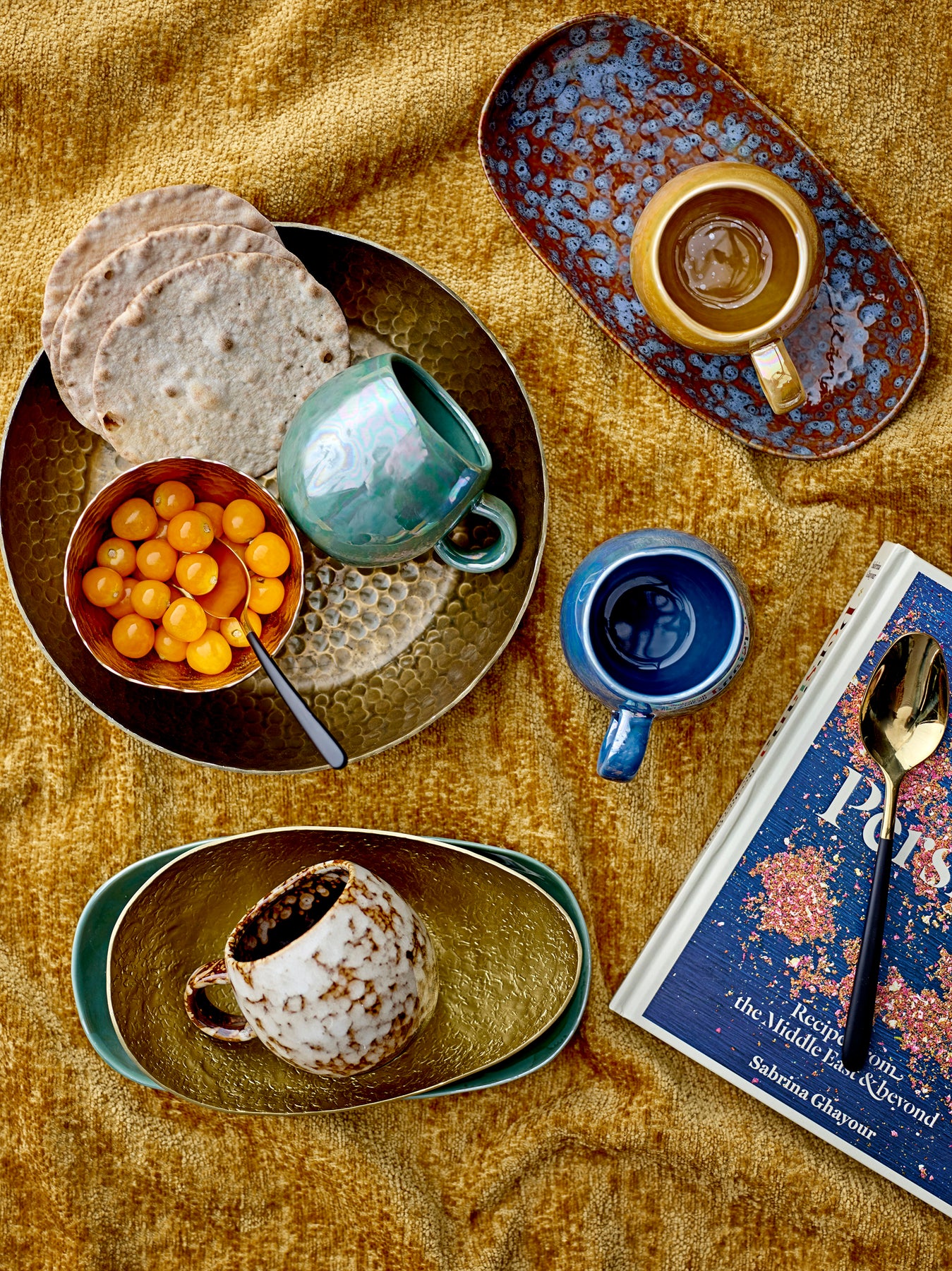 Crafted from robust stoneware, this autumn-toned cup showcases the natural beauty of artisanal ceramics. Each piece features a distinctive speckled glaze that varies subtly from cup to cup, reflecting the organic nature of the firing process.