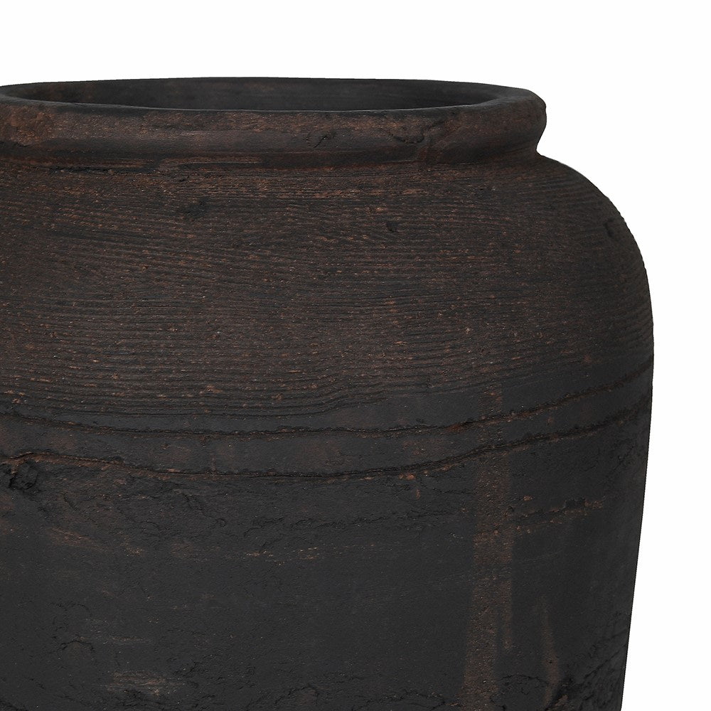Handcrafted with authentic character, this rustic charcoal vase brings earthy elegance to any interior. Its distressed finish showcases natural variations in texture and tone, and the weathered aesthetic complements both contemporary and traditional décor.