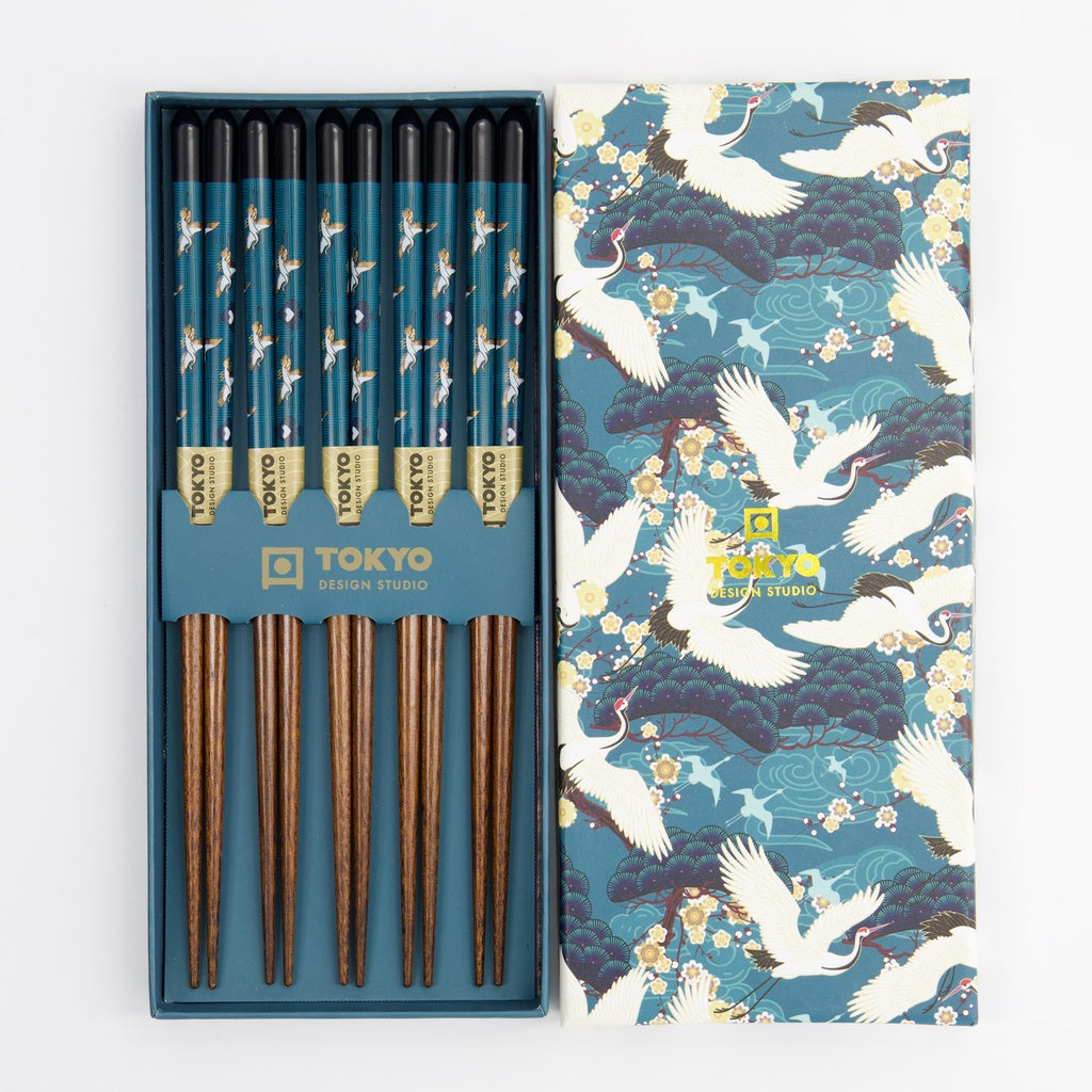 Elevate the art of dining with the S/5 Teal Crane Chopsticks Giftset, an exquisite collection blending traditional craftsmanship with refined style. Each chopstick features a serene teal finish accented by graceful crane motifs, symbolizing longevity and elegance.