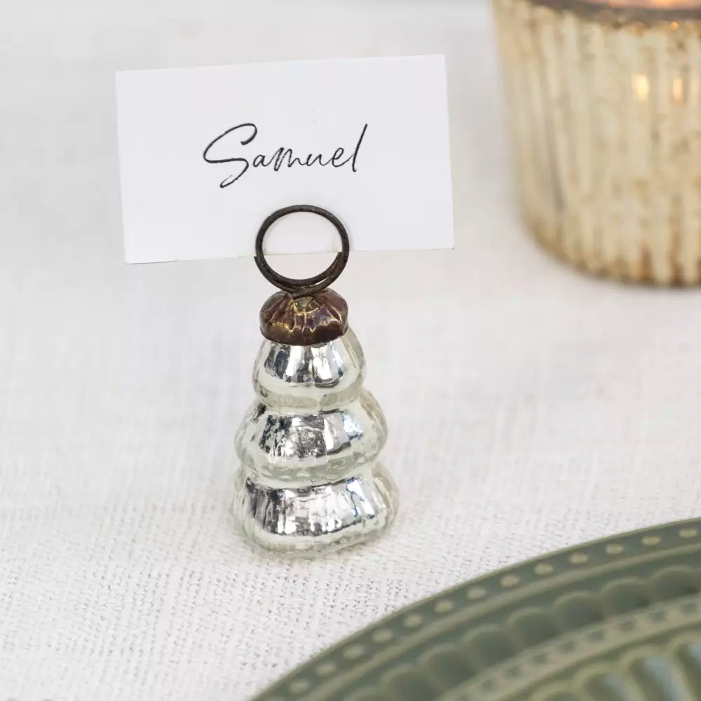 Celebrate the festive season with the Silver Tree Name Place Holder, an elegant addition to your holiday table. Crafted with a sleek silver finish, it offers a sophisticated way to display guest names, enhancing your Christmas dinner setting.