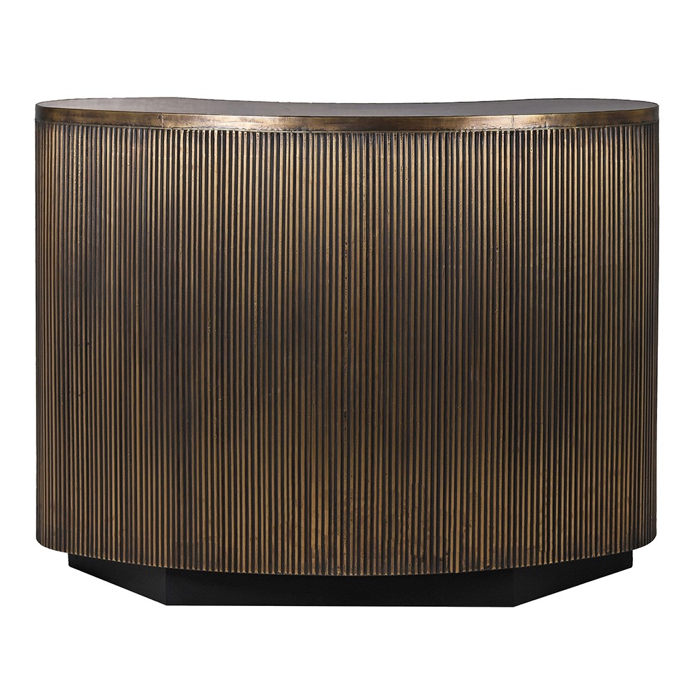 Elevate your space with the Antique Brass Curved Ribbed Bar, expertly crafted to blend vintage charm and modern elegance. Its curved design and textured ribbed detailing add sophistication while optimizing the countertop area for serving and socializing.