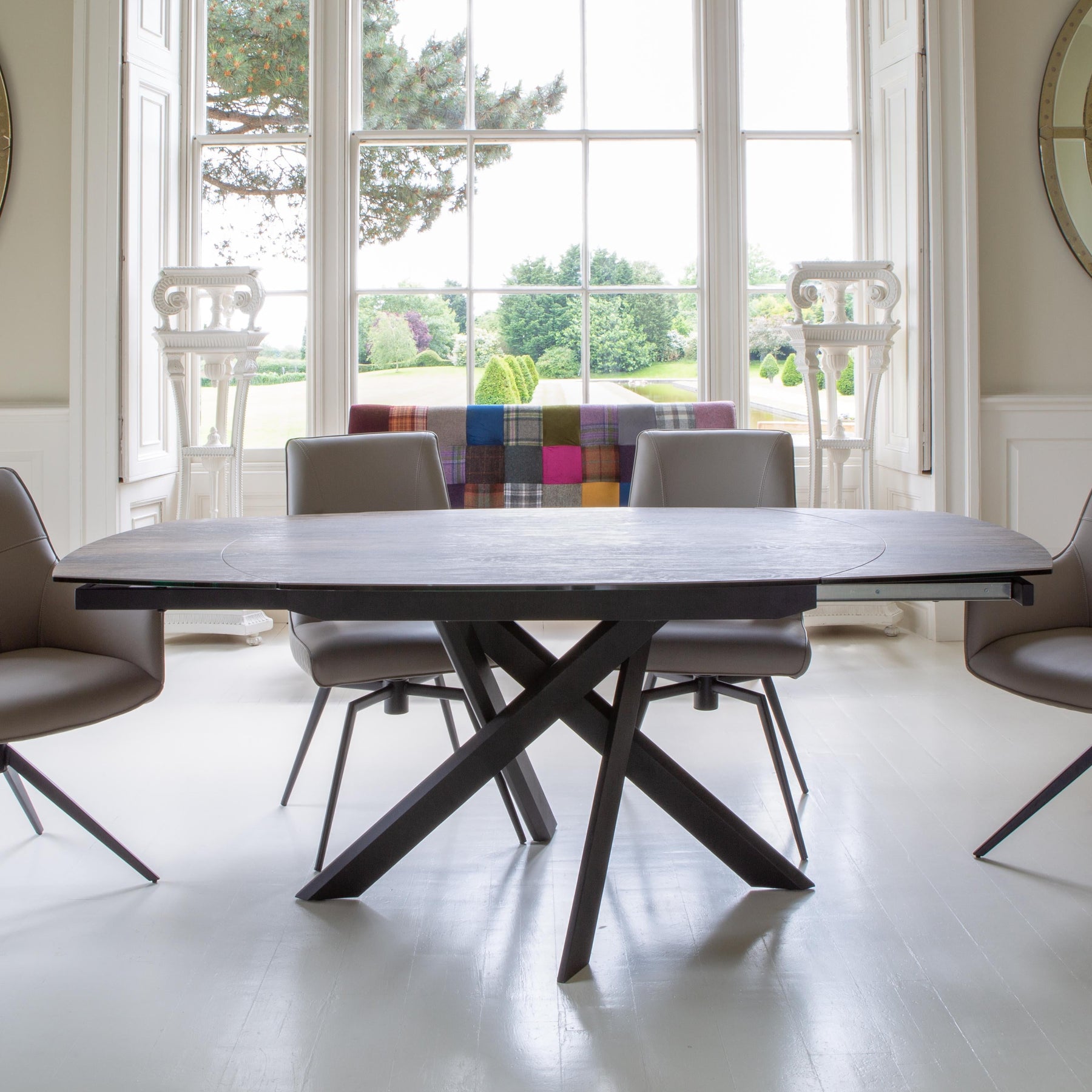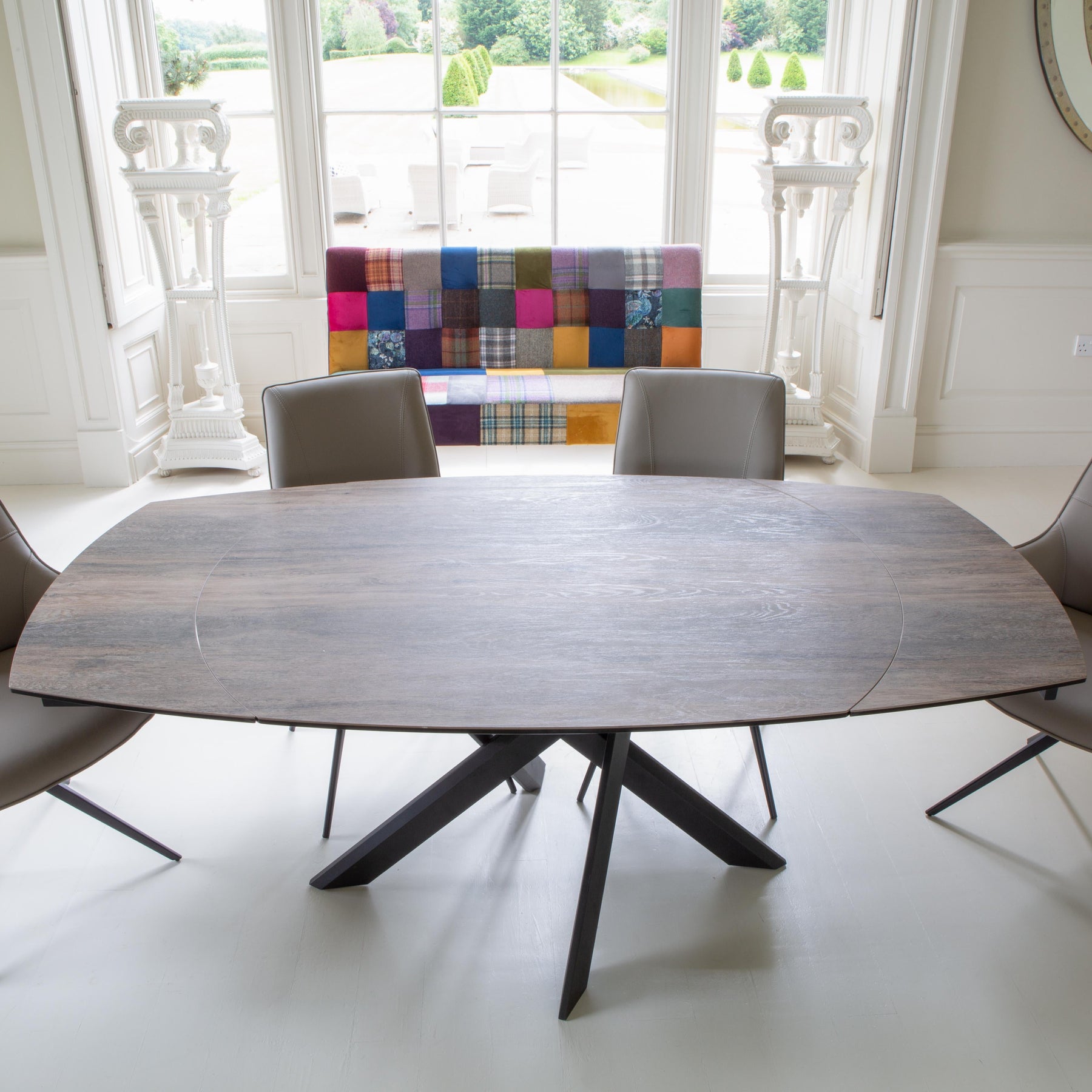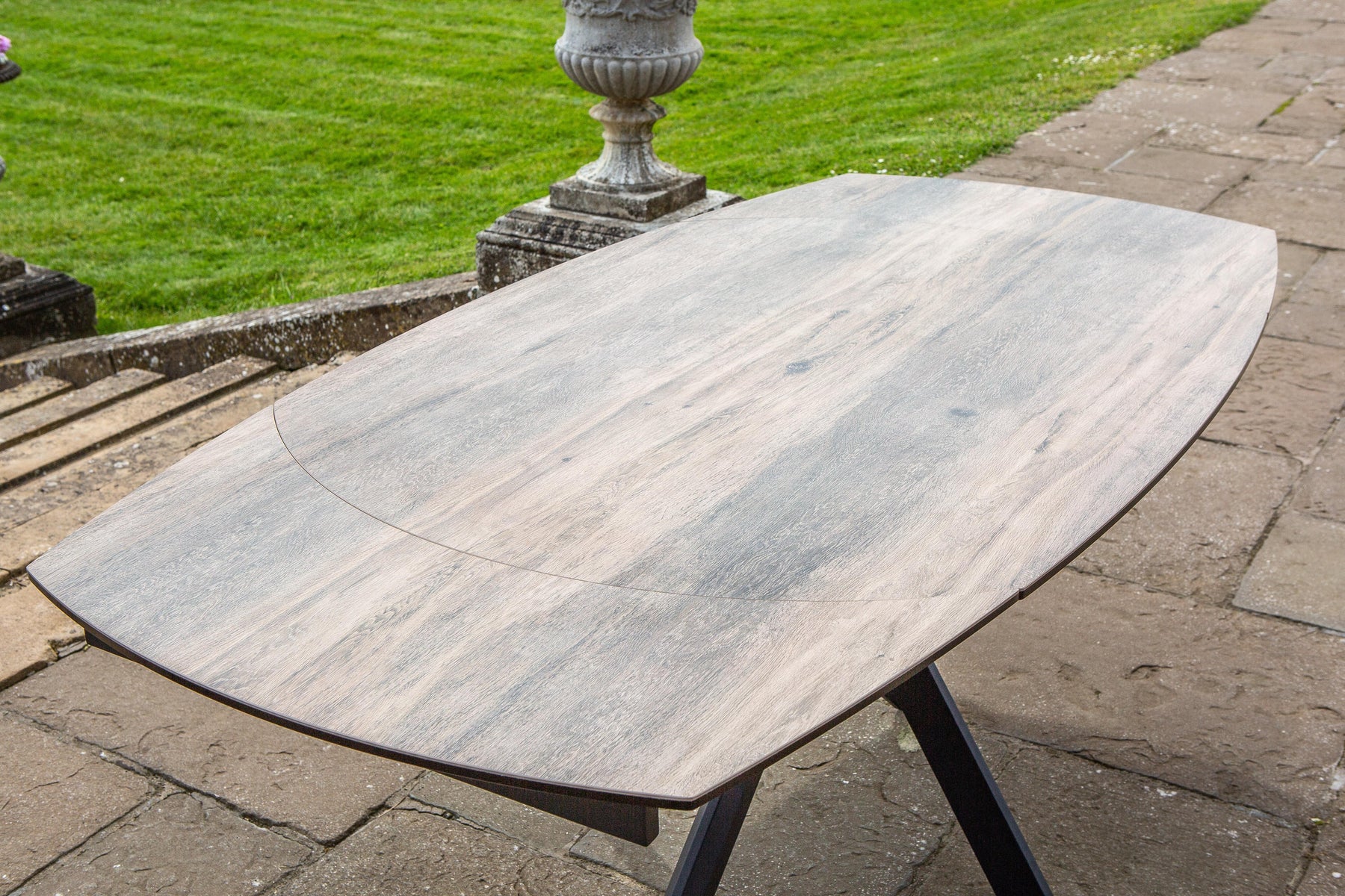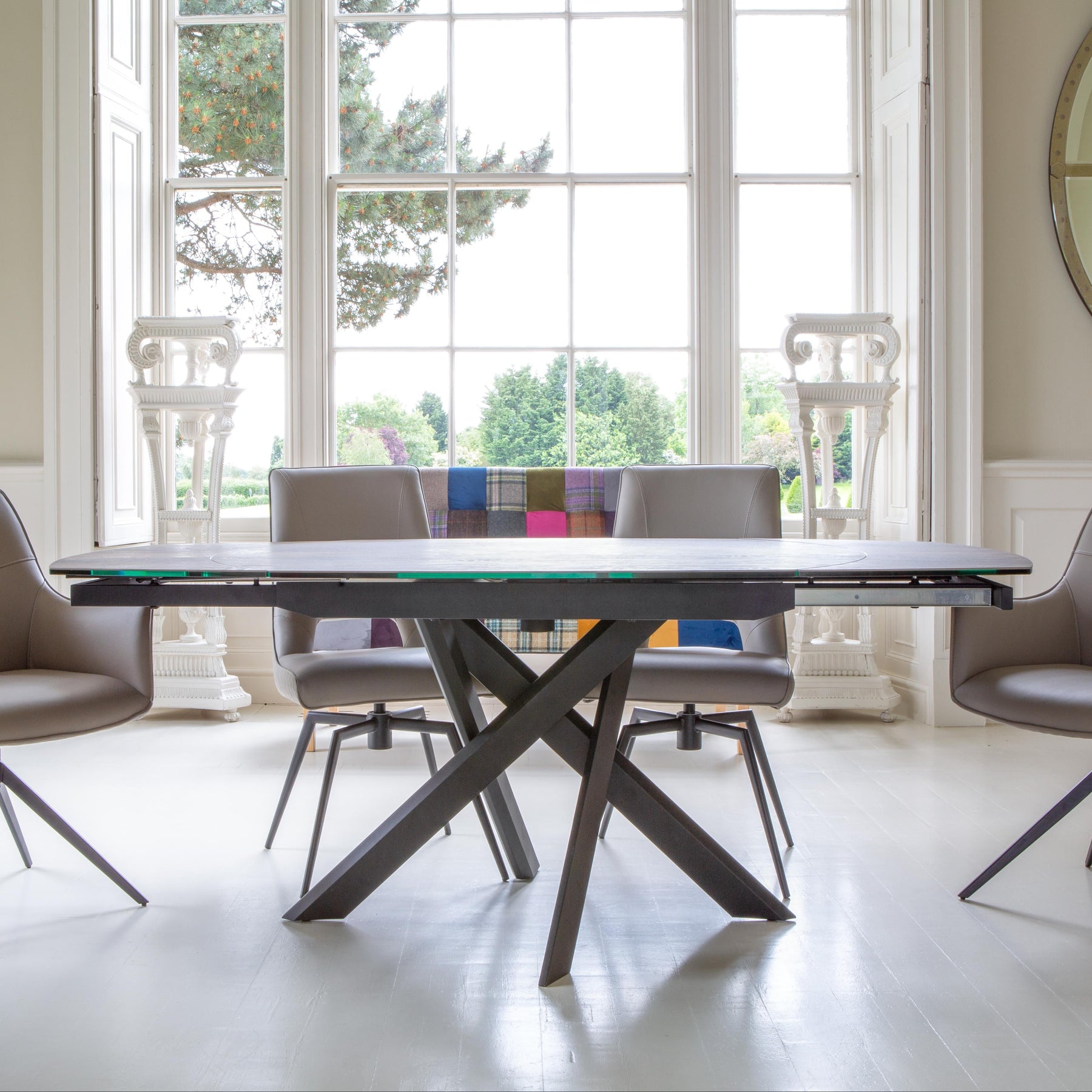 The Seville Extending Dining Table combines practical elegance with functional design. Its ceramic top features an authentic woodgrain pattern, requiring minimal upkeep. The innovative twist-opening mechanism extends the table smoothly to accommodate additional guests, whilst sturdy metal cross legs provide exceptional stability and a contemporary aesthetic. Perfect for households seeking a dining solution that balances style, durability, and everyday practicality.