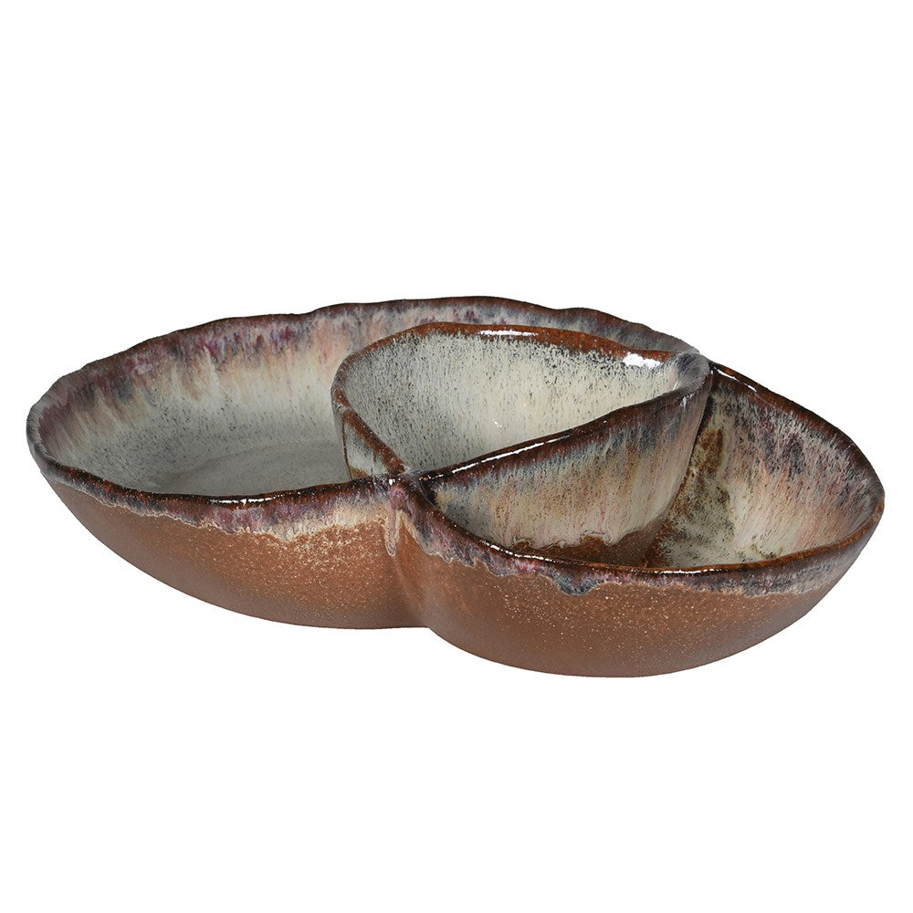 The Brown Ombre Glazed Sectioned Bowl offers a sophisticated way to serve. Its carefully designed compartments help keep ingredients separate, ideal for appetizers, dips, or snacks. The ombre glazing adds an elegant, artisanal touch, enhancing both presentation and durability.