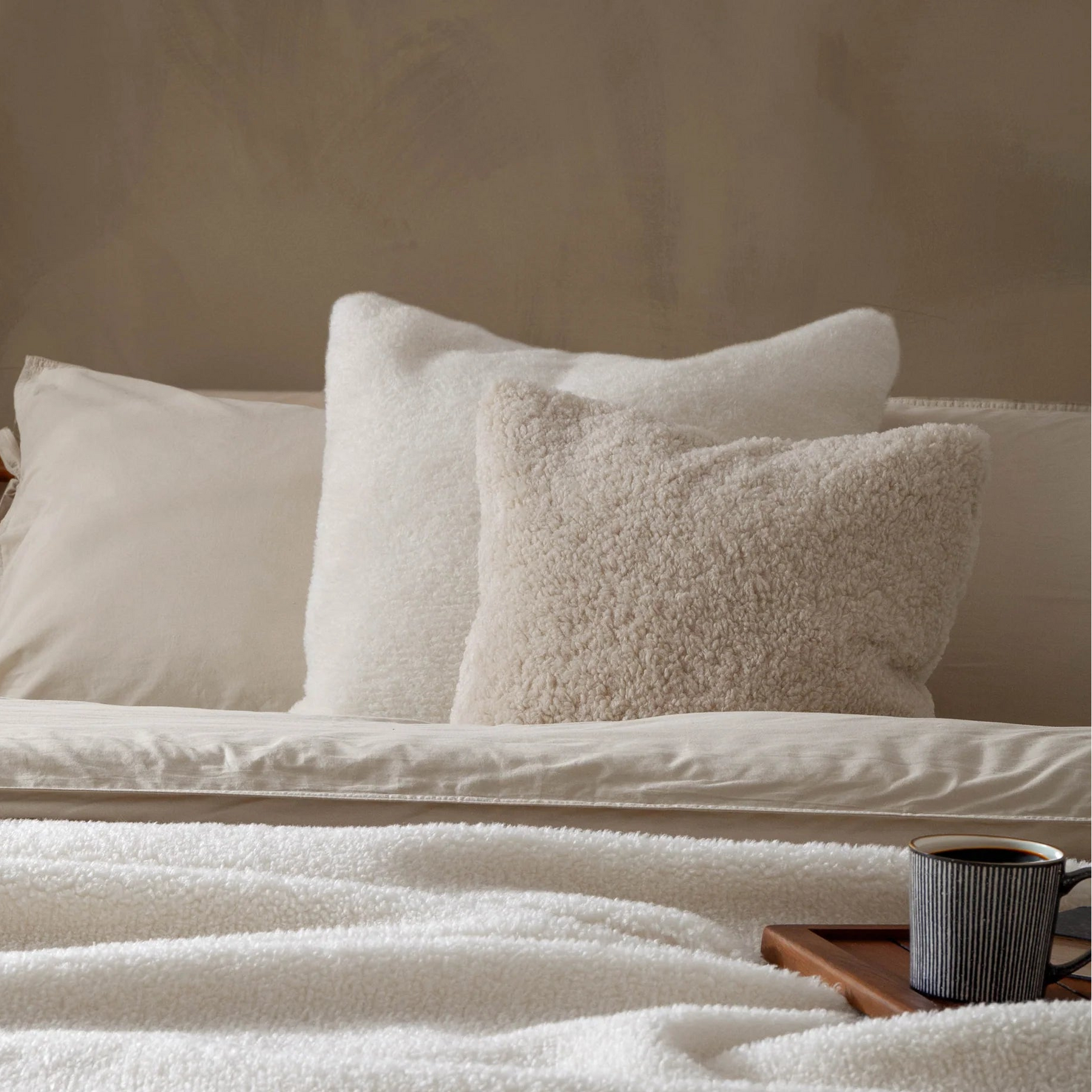 Transform your living space with this generously sized faux sherling cushion, crafted to deliver both comfort and contemporary style.
