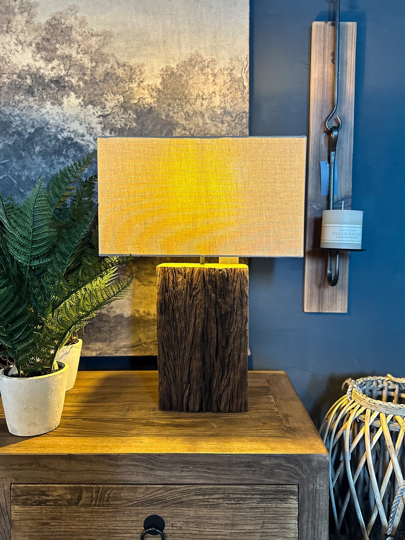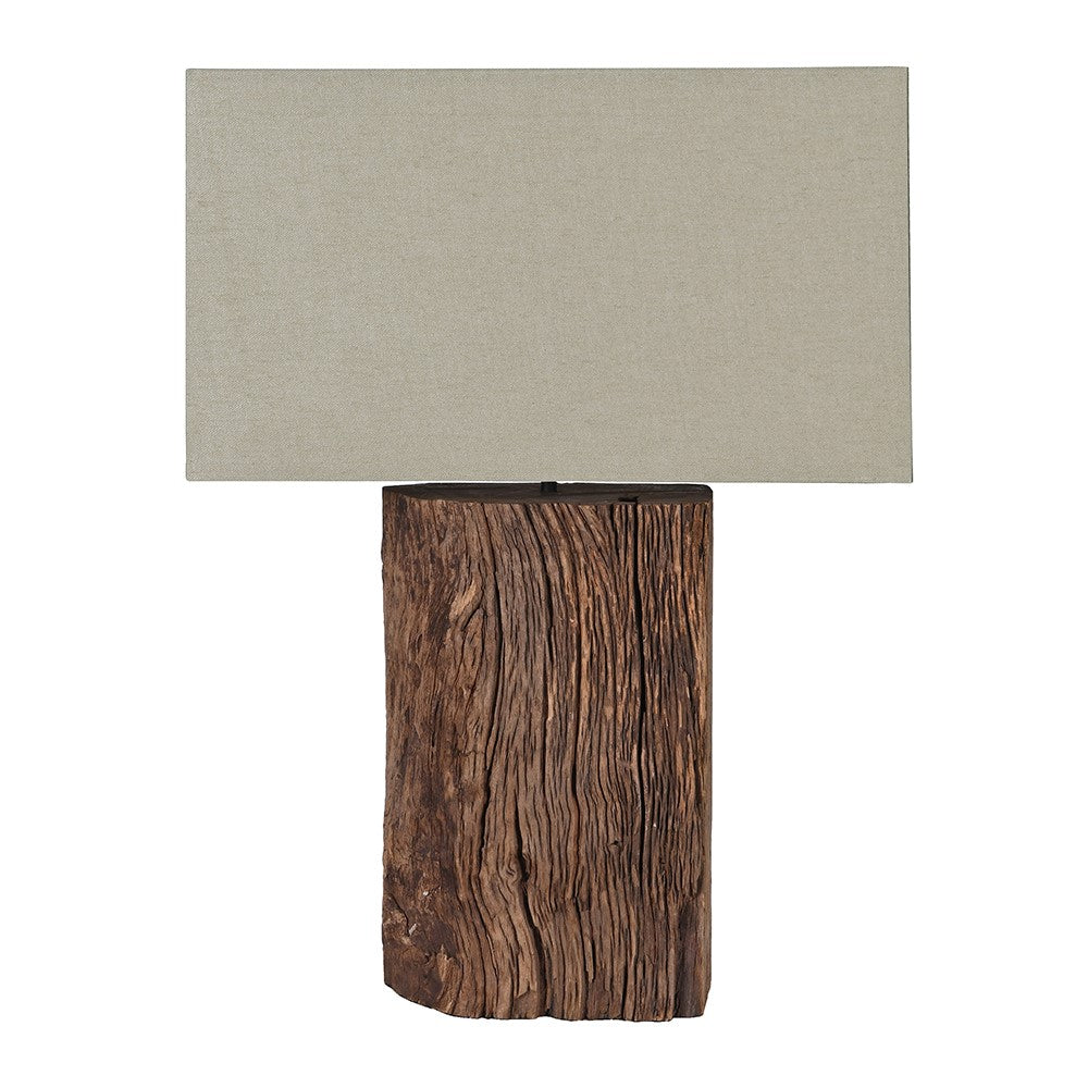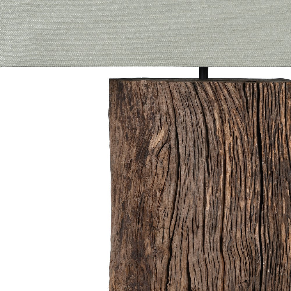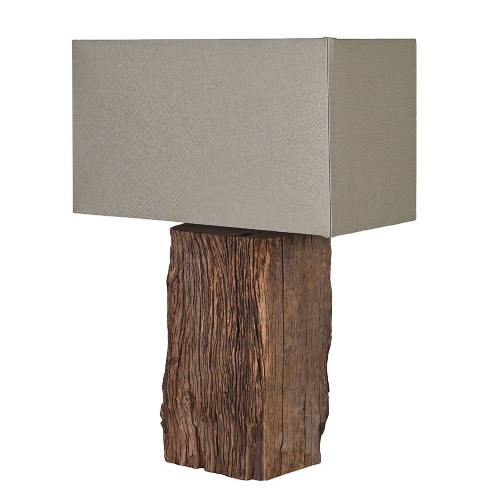 Reclaimed Timber Table Lamp W/Linen Shade