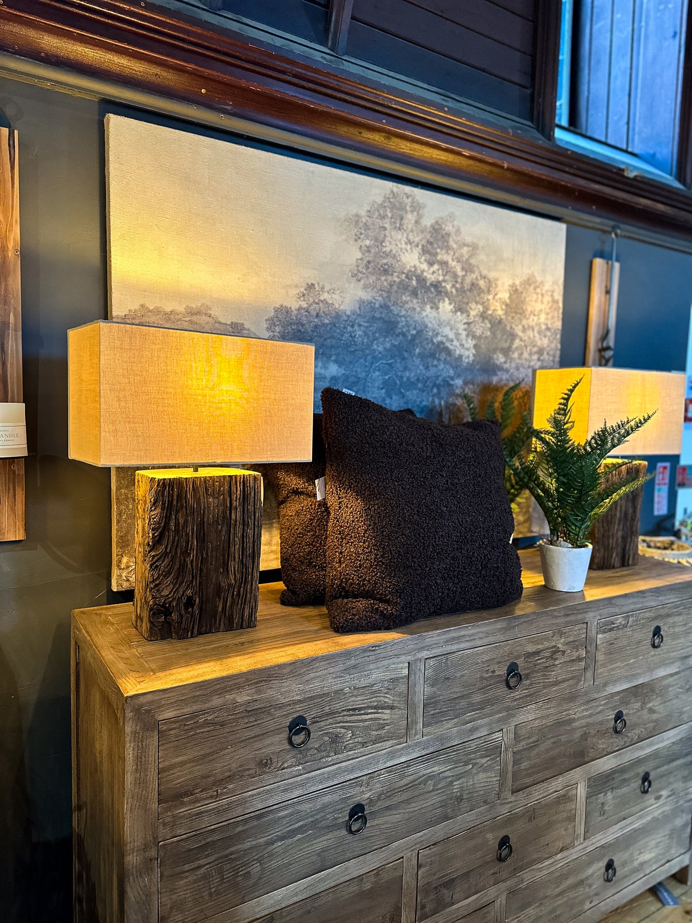 Crafted from reclaimed timber, this table lamp brings authentic character to any interior. Each base is entirely unique, showcasing the natural grain, patina, and weathered beauty of salvaged wood—no two pieces are identical. E27 bulb required, sold separately.