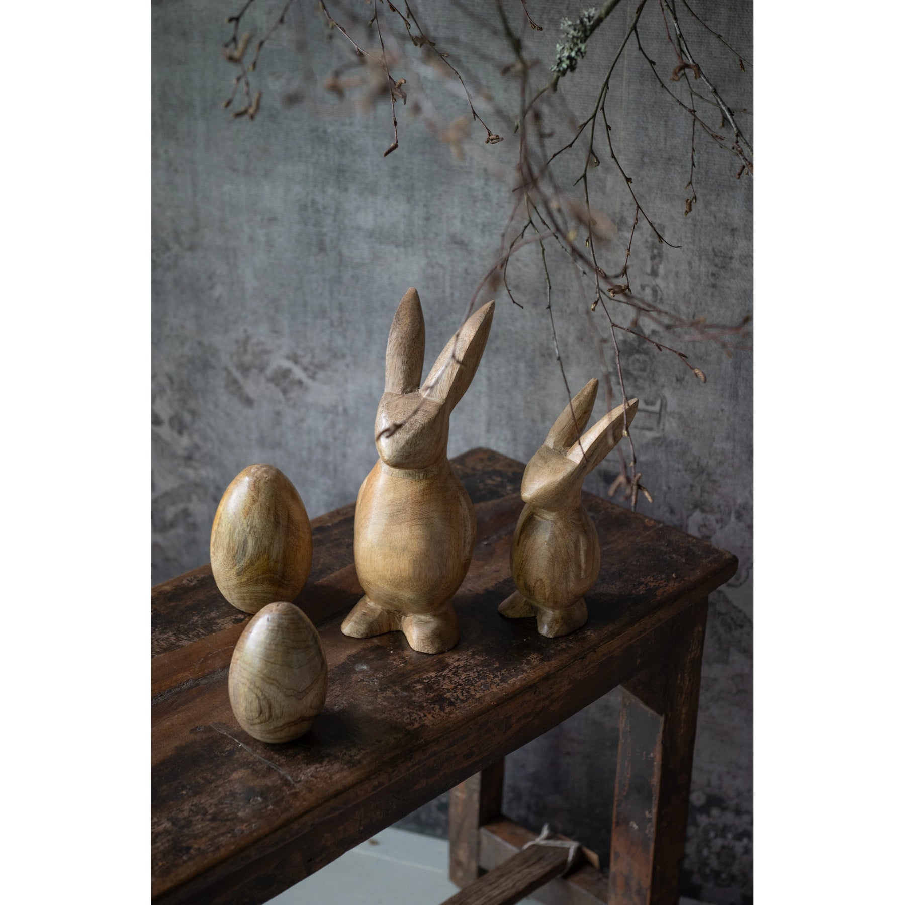 Hop into Easter celebrations with this charming Large Wooden Rabbit ornament. Crafted from natural wood, this delightful piece brings rustic warmth to your festive décor.