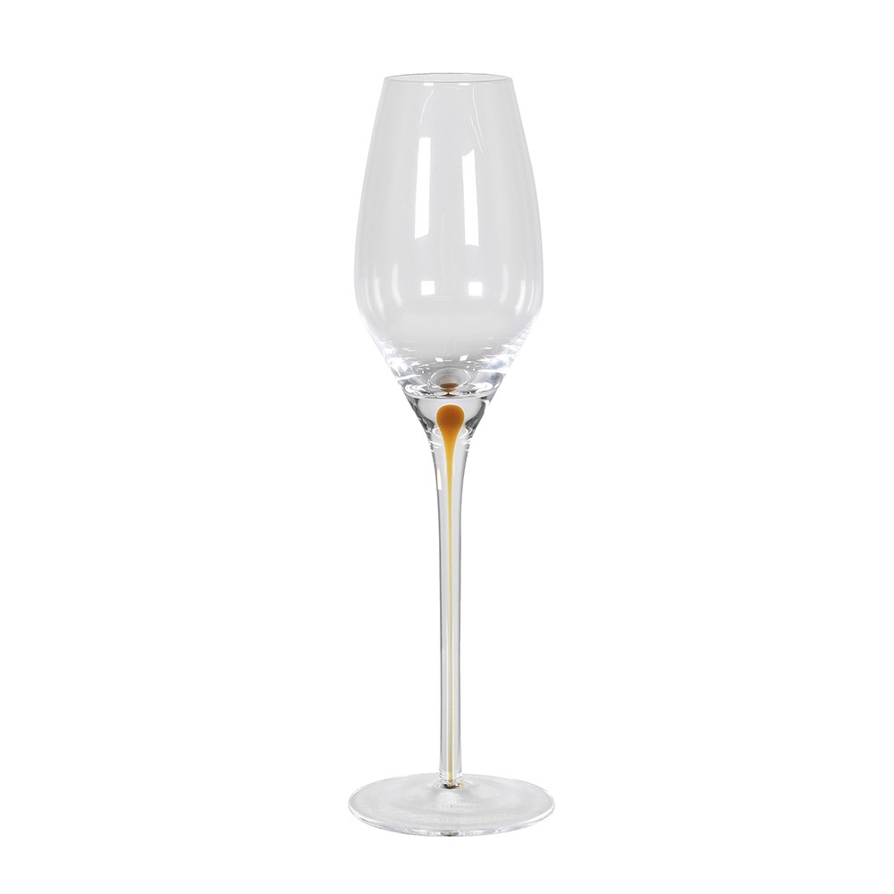 Elevate your champagne service with this striking teardrop flute, crafted from premium clear glass with a distinctive amber drop accent.