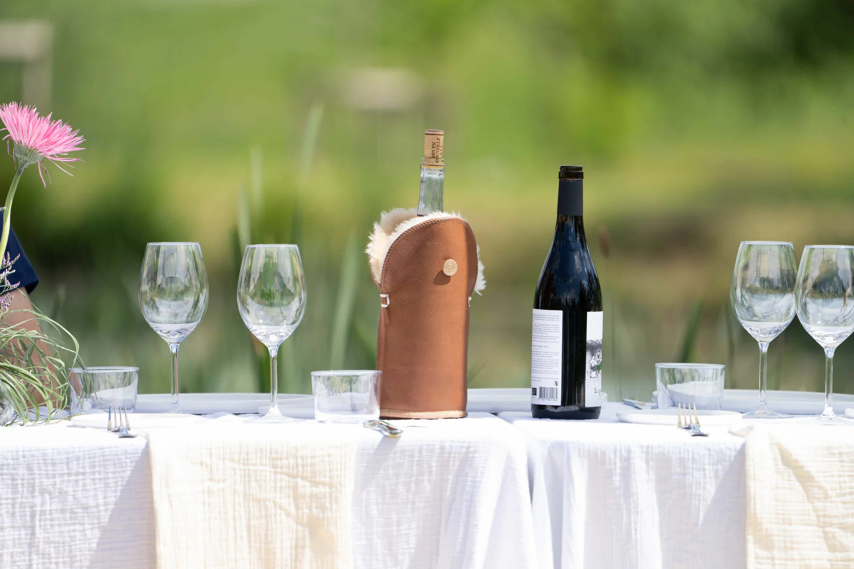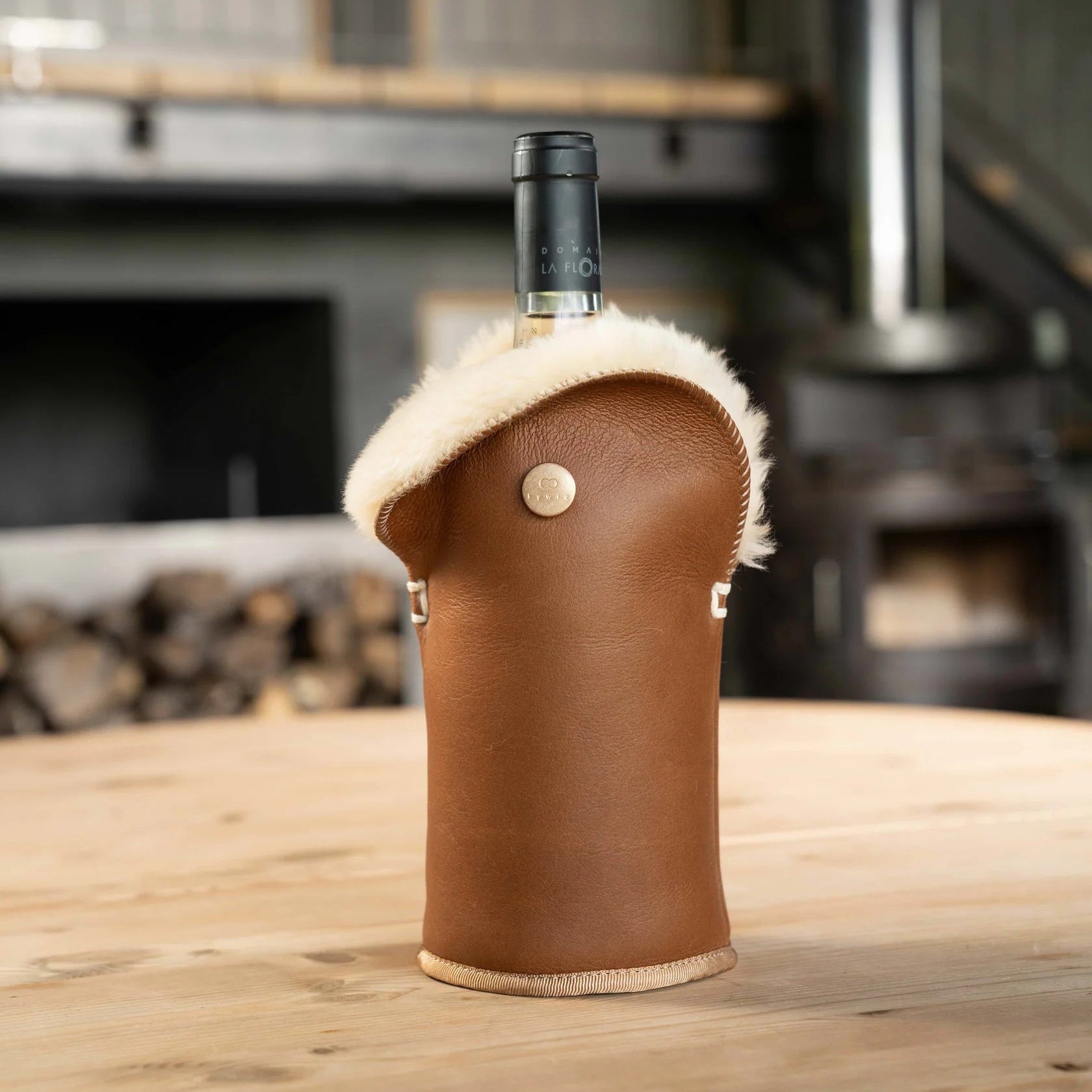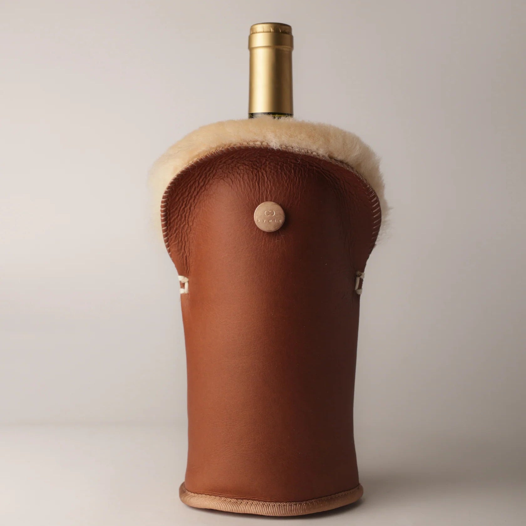 Elevate your wine service with this luxurious sheepskin wine bottle holder. Crafted from 100% wool with premium wool insulation, it keeps your bottle at the perfect temperature whilst adding a touch of natural elegance to any table. The soft camel napa finish provides both comfort and sophistication. An ideal gift for wine enthusiasts who appreciate quality craftsmanship and timeless design.