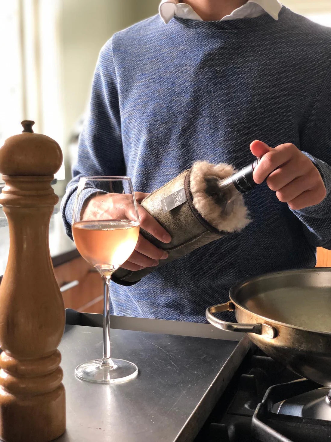 Crafted from 100% sheepskin wool, this vintage brown wine bottle holder combines rustic charm with luxurious comfort. The natural wool insulation keeps your bottle at the perfect temperature while adding warmth to any table setting. An ideal gift for wine enthusiasts who appreciate quality craftsmanship and timeless elegance.