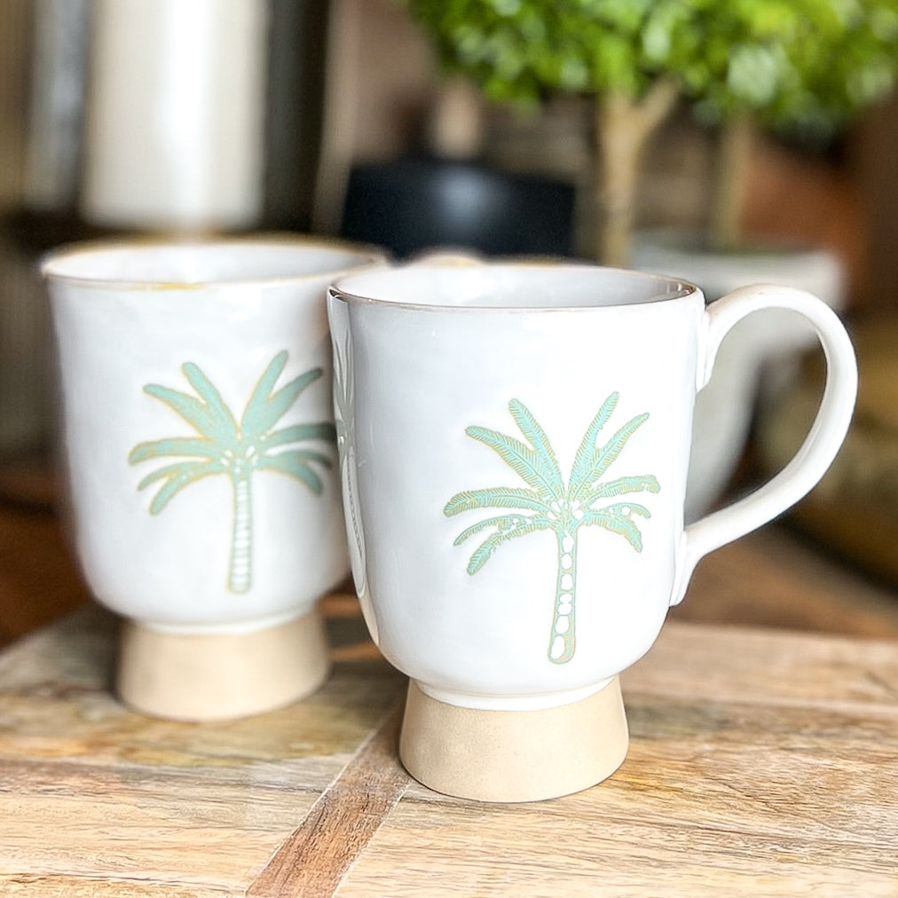 Sip your favourite beverages in style with this striking white stoneware mug, adorned with a vibrant green palm tree design. Crafted from durable stoneware, it's perfect for daily use at home or the office.