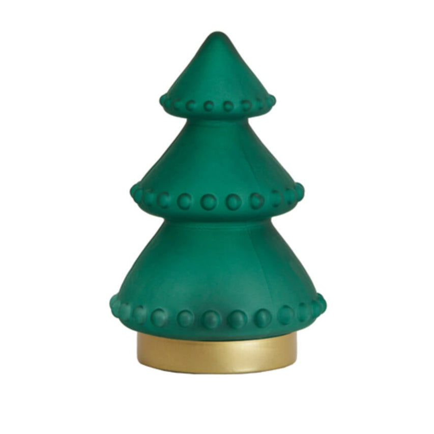 Illuminate your festive décor with this 18.5cm LED Matte Green Glass Tree Table Lamp. Designed for convenience, it is battery operated, allowing flexible placement without worrying about cables. Its matte green glass provides a refined, subtle glow, creating a warm and inviting ambiance perfect for holiday settings or year-round decorative use. Compact and elegant, this lamp elevates table displays with expert craftsmanship and practical lighting. Batteries not included.