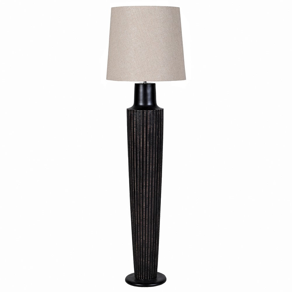 Black Ridged Floor Lamp W/Linen Shade