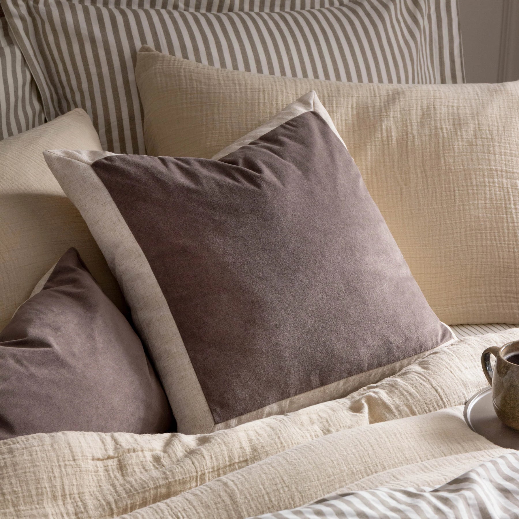 This 50x50cm cushion combines the natural texture of taupe linen with an elegant cream border, creating a refined contrast that enhances any interior setting. The breathable linen fabric ensures comfort and durability, while the cream border adds a sophisticated edge. Ideal for elevating living room or bedroom decor with understated luxury.