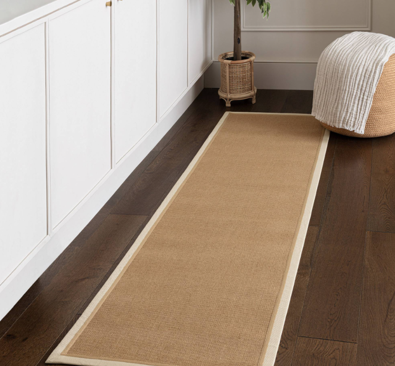 Elevate your hallways and entryways with this sophisticated cream border neutral jute runner. Measuring 68x240cm, its generous length makes it ideal for corridors, kitchens, or living spaces where you need both style and practicality. Crafted from natural jute fibres, this runner delivers authentic texture whilst the cream border detail adds refined visual interest.