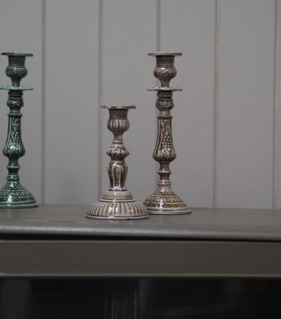 20cm NERI Dark Brown Stripe Glass Tealight Holder