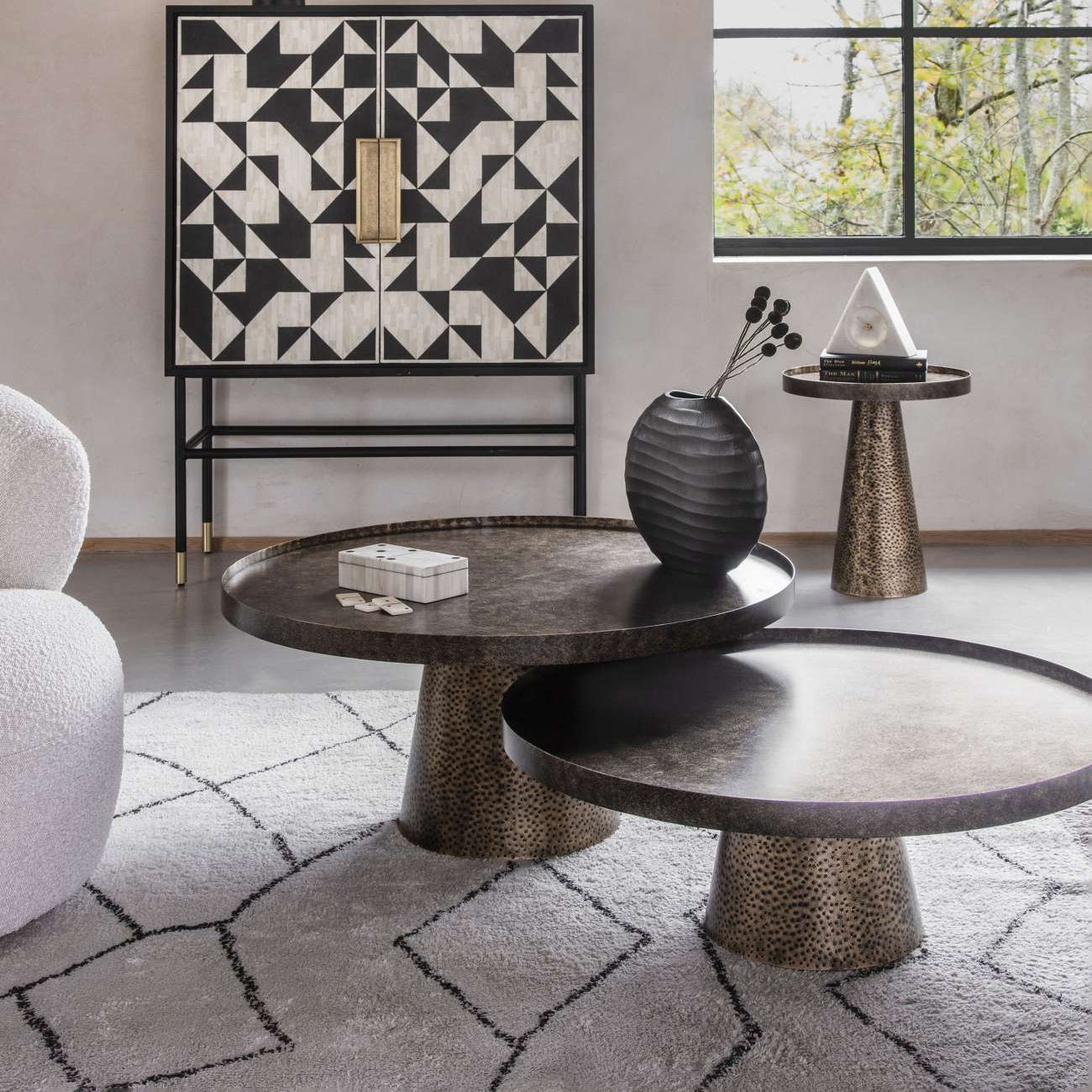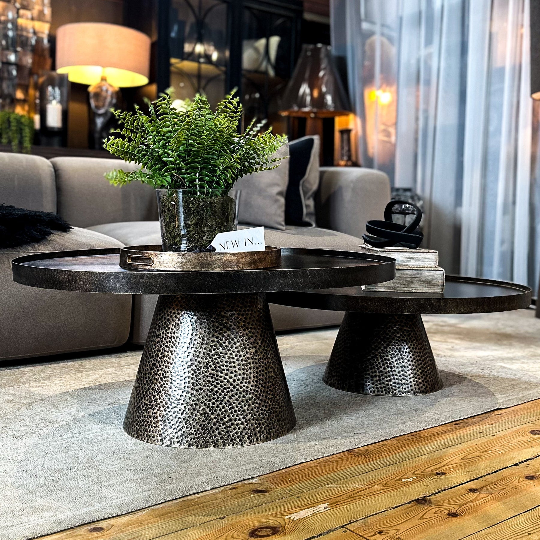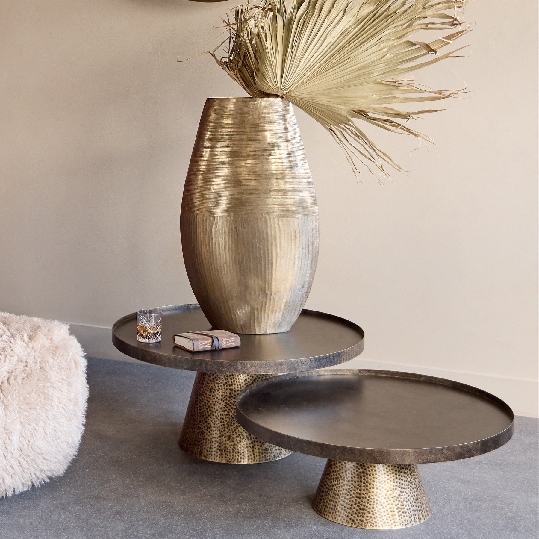 Elevate your living space with this stunning set of two iron coffee tables in rustic antique gold finish. The warm metallic tone complements both contemporary and traditional interiors, while the sturdy construction ensures lasting durability.