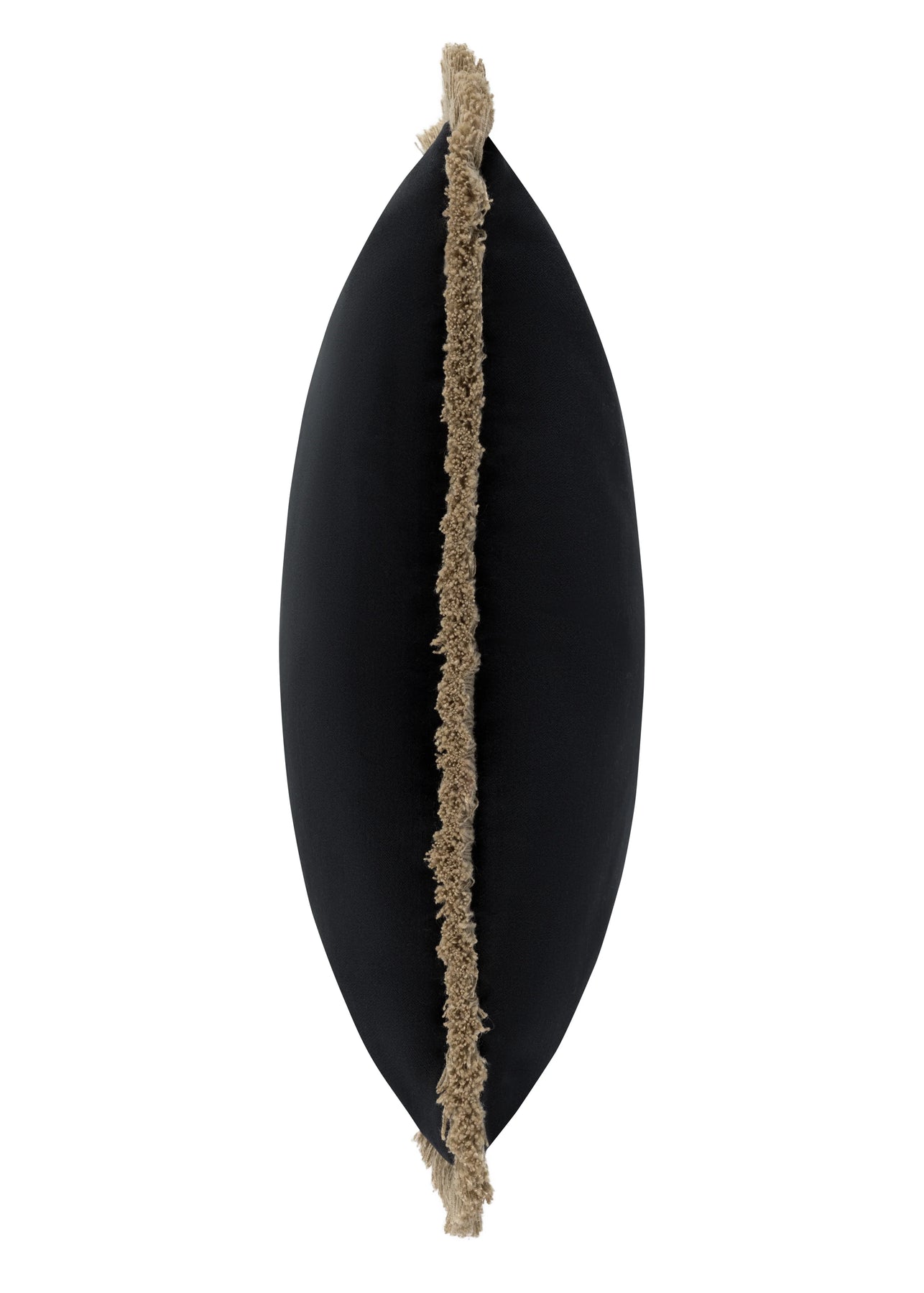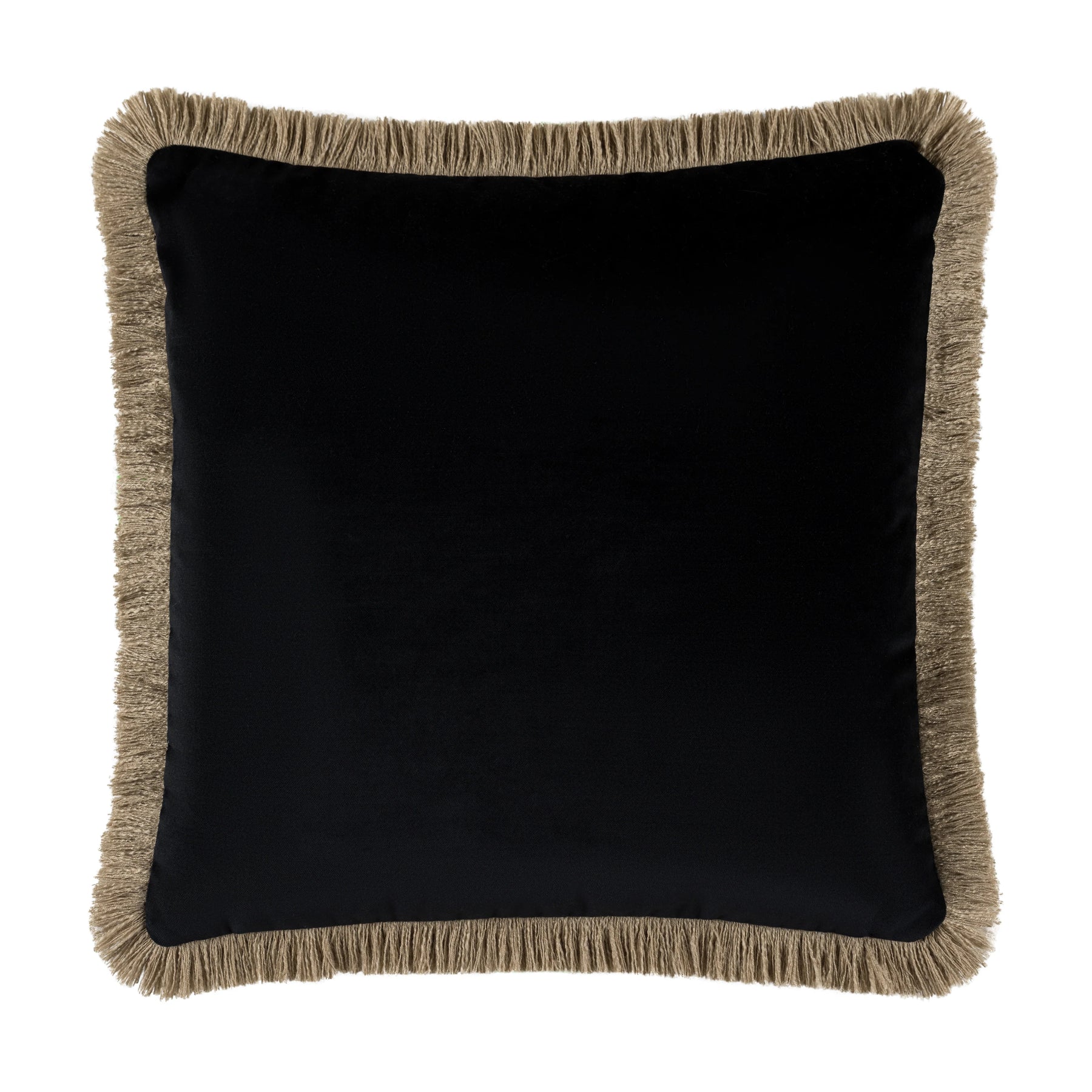 Eloise Black Cushion 43x43cm This striking black cushion combines contemporary design with textural interest through its distinctive fringe detailing. The 43x43cm dimensions make it an ideal accent piece for sofas, chairs, or beds, offering versatile styling options across any interior scheme.