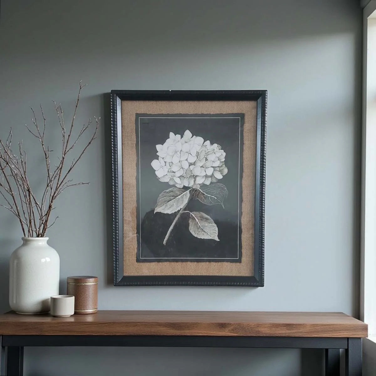 Black & White Hydrangea Framed Print No.2 captures the delicate complexity of hydrangea blooms in striking monochrome.