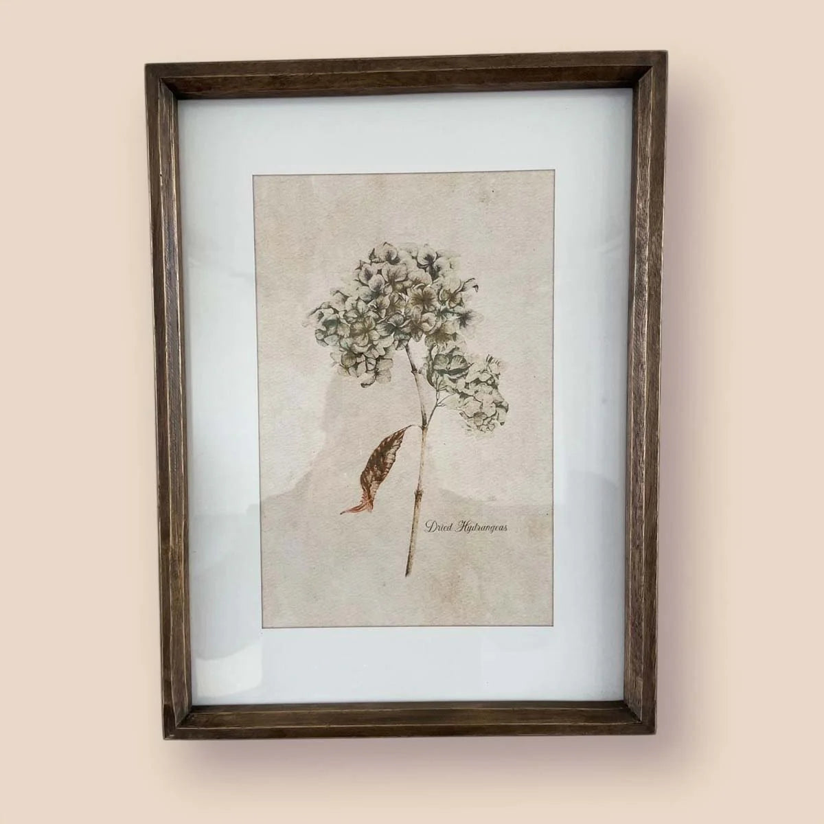 Vintage Hydrangea Framed Print No.2 showcases delicate botanical artwork in a timeless rustic frame that complements both traditional and contemporary interiors. The weathered wood frame adds authentic character while protecting the print behind glass.