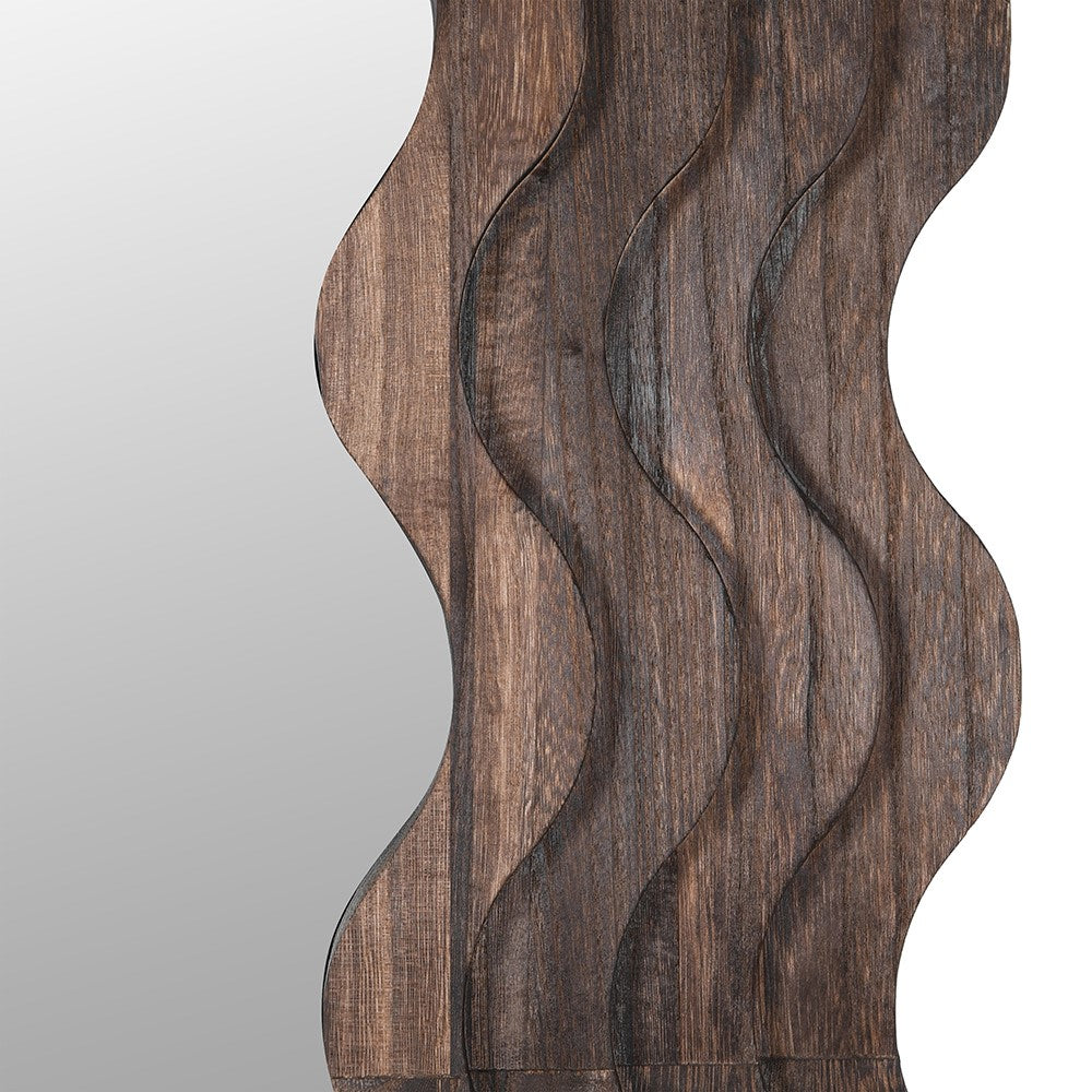 Crafted from durable paulownia wood, the Paulownia Wave Wood Mirror features an elegant large waved frame that adds texture and dimensionality to any wall. Its natural wood grain highlights expert craftsmanship while maintaining structural stability. This mirror blends artful design with practical use, making it a sophisticated focal point ideal for enhancing both modern and traditional interiors.