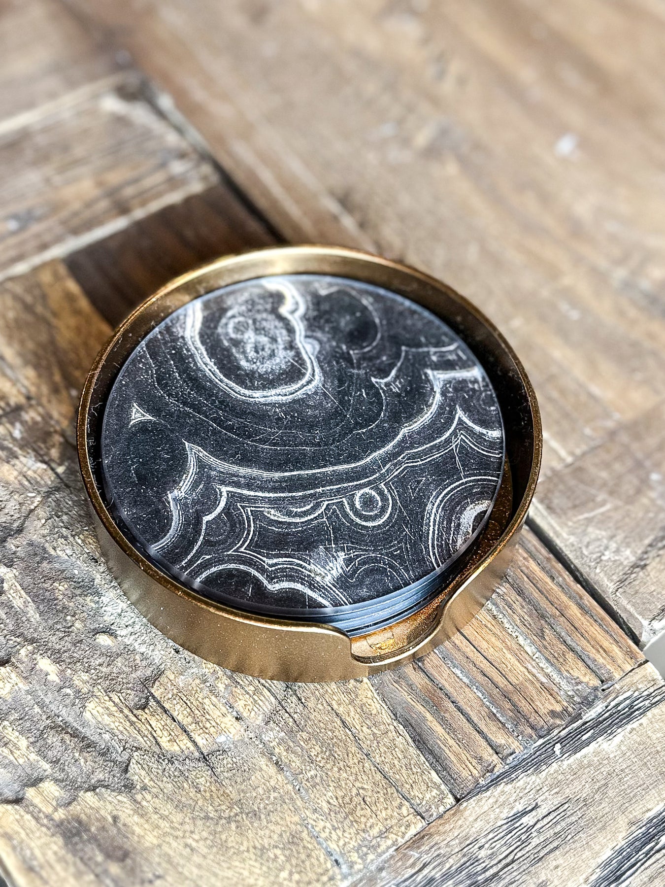 Our black marble effect coasters are the perfect addition to your kitchen/dining area. The coasters are both modern and functional, displayed in a gold container to keep these tidily stored together when not in use.